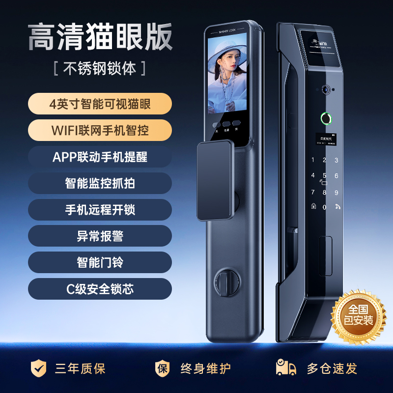 • 스테인레스 스틸 잠금 본체 [고화질 시각적 고양이 눈 + 휴대폰 지능형 제어 + 지능형 모니터링 및 캡처]