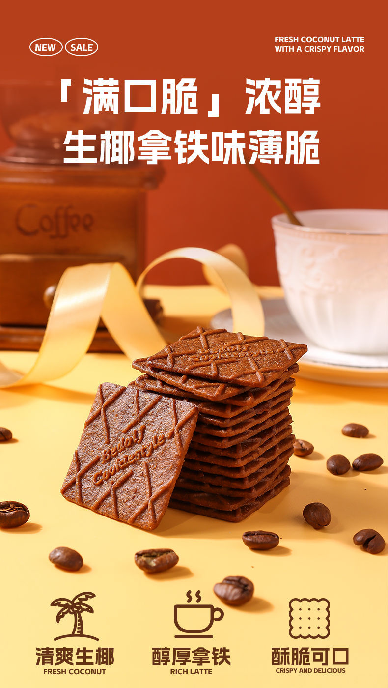 커피 간식을 갈망하는 생 코코넛 라떼 크래커 고급 스낵 음식 오후 다과 사무실 간식스토어 가기
