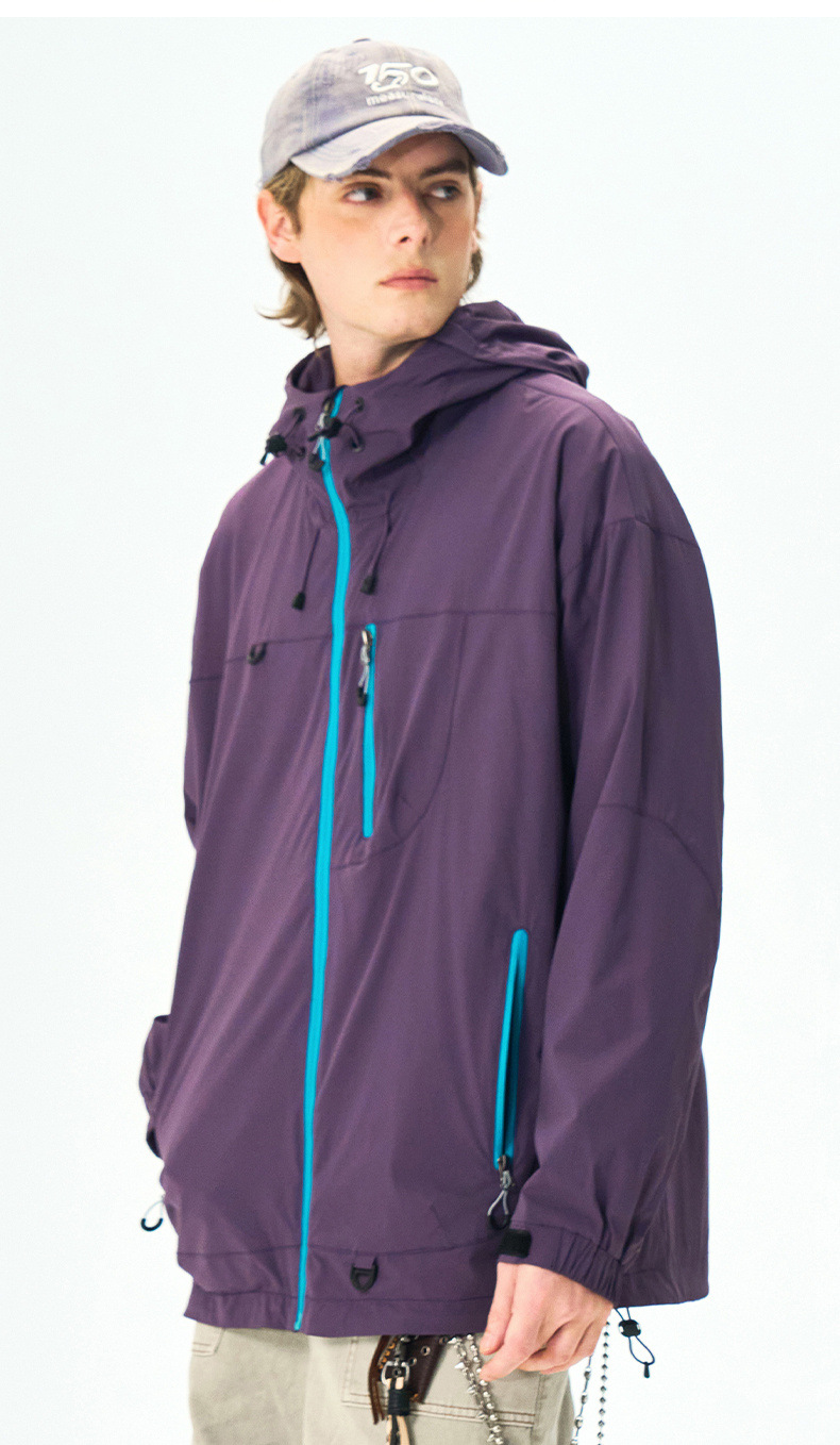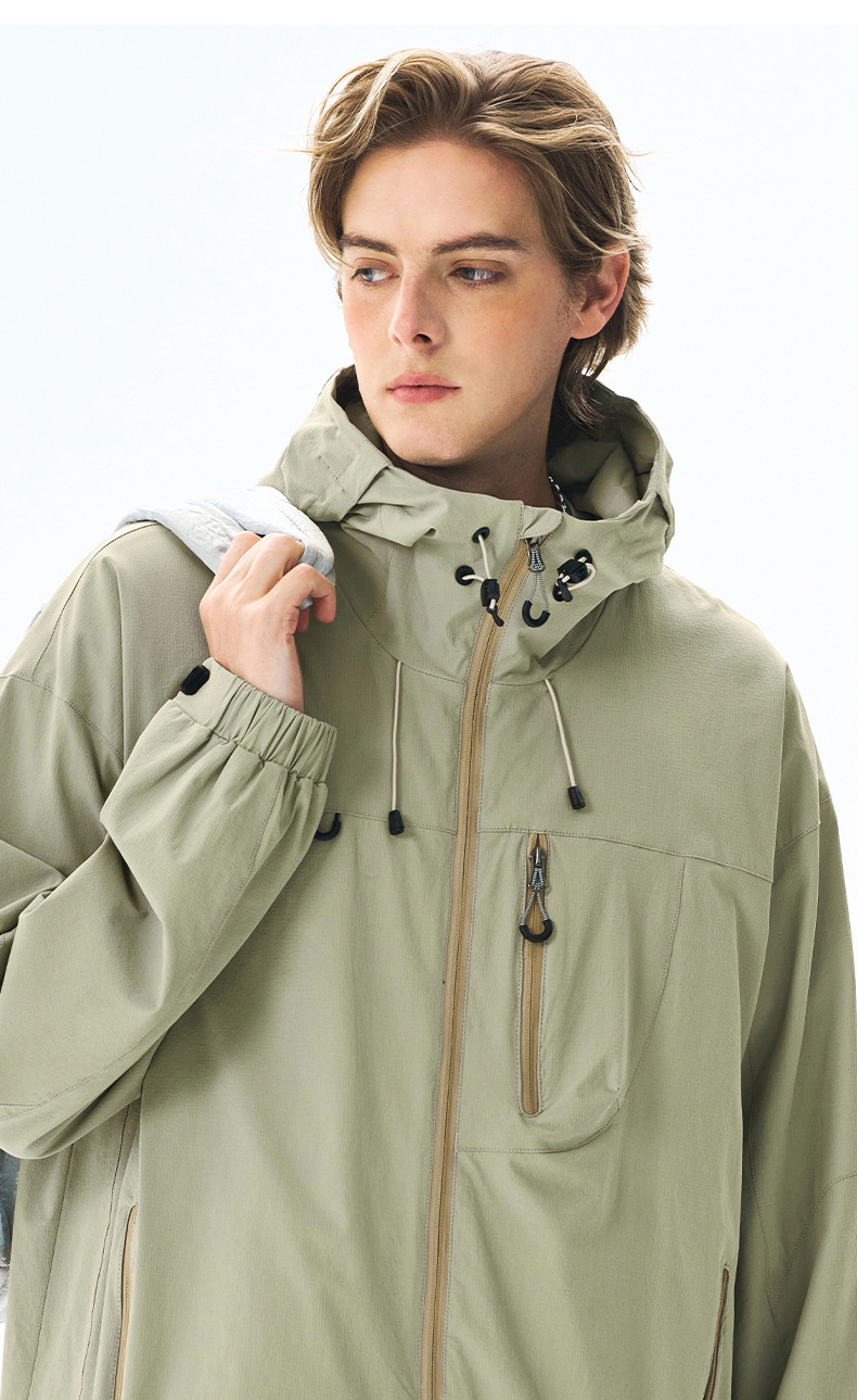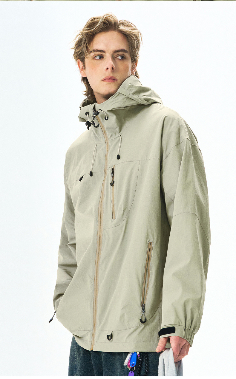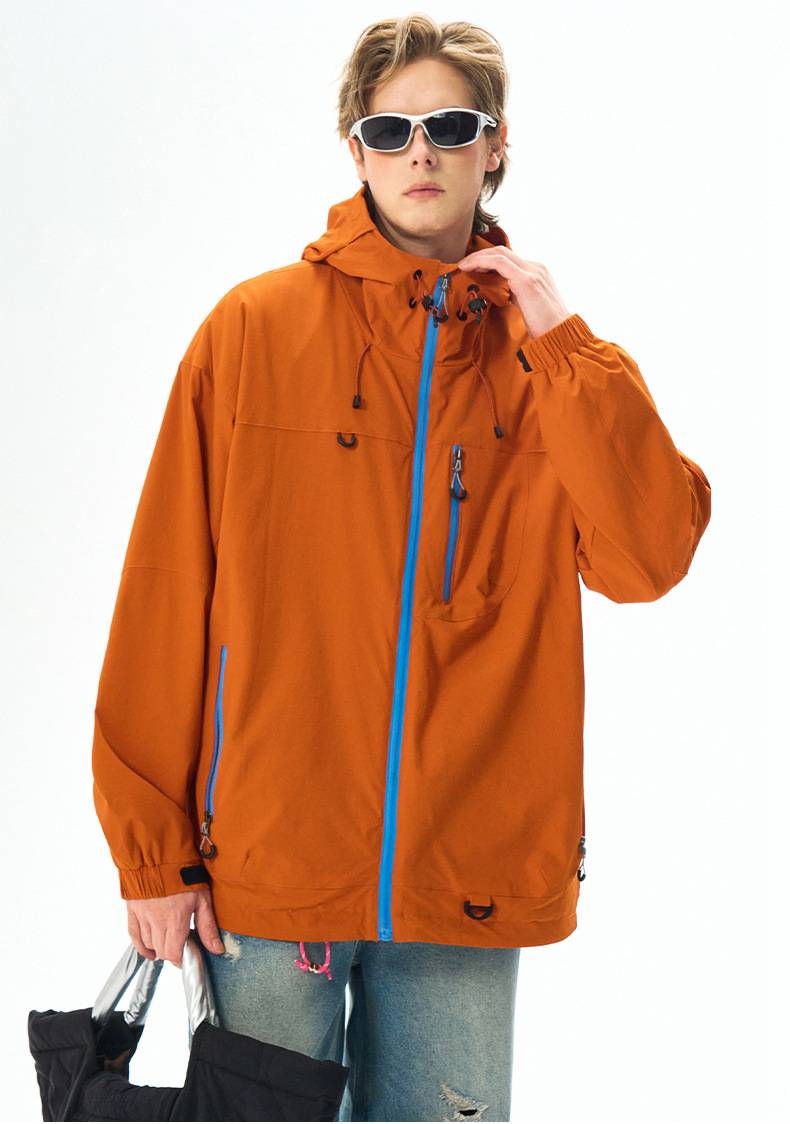 IZEXX 패션 브랜드 마운틴 야외 방수 스포츠 재킷 남자 느슨한 올 매치 후드 커플 탑
