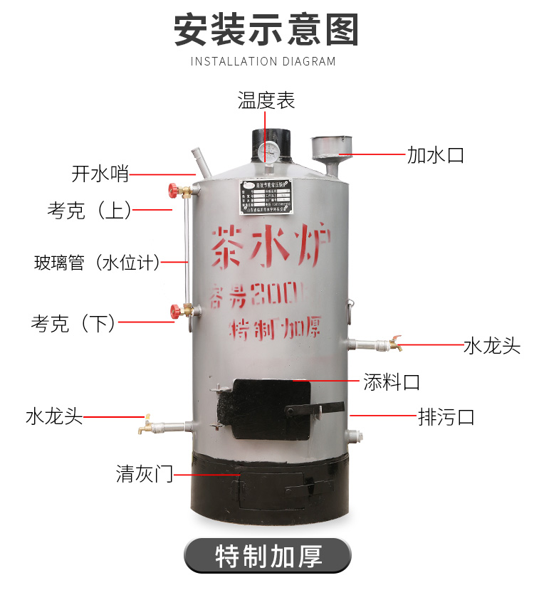 차 스토브 목재 연소 가정용 소형 석탄 연소 소형 보일러 공장 학교 건설 현장 물 목욕을 자랑하는 매점스토어 가기
