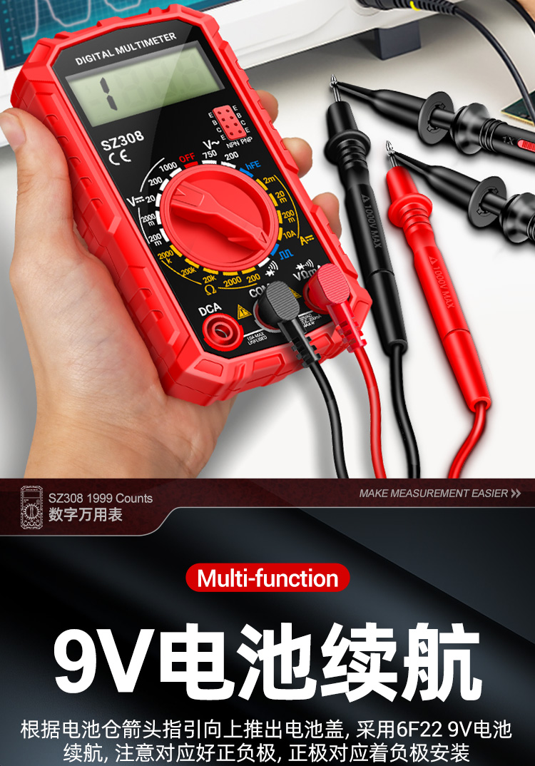 전기 멀티 미터 디지털 고정밀 다기능 작은 휴대용 디지털 디스플레이 미터 전압 측정 유지 보수 가구스토어 가기