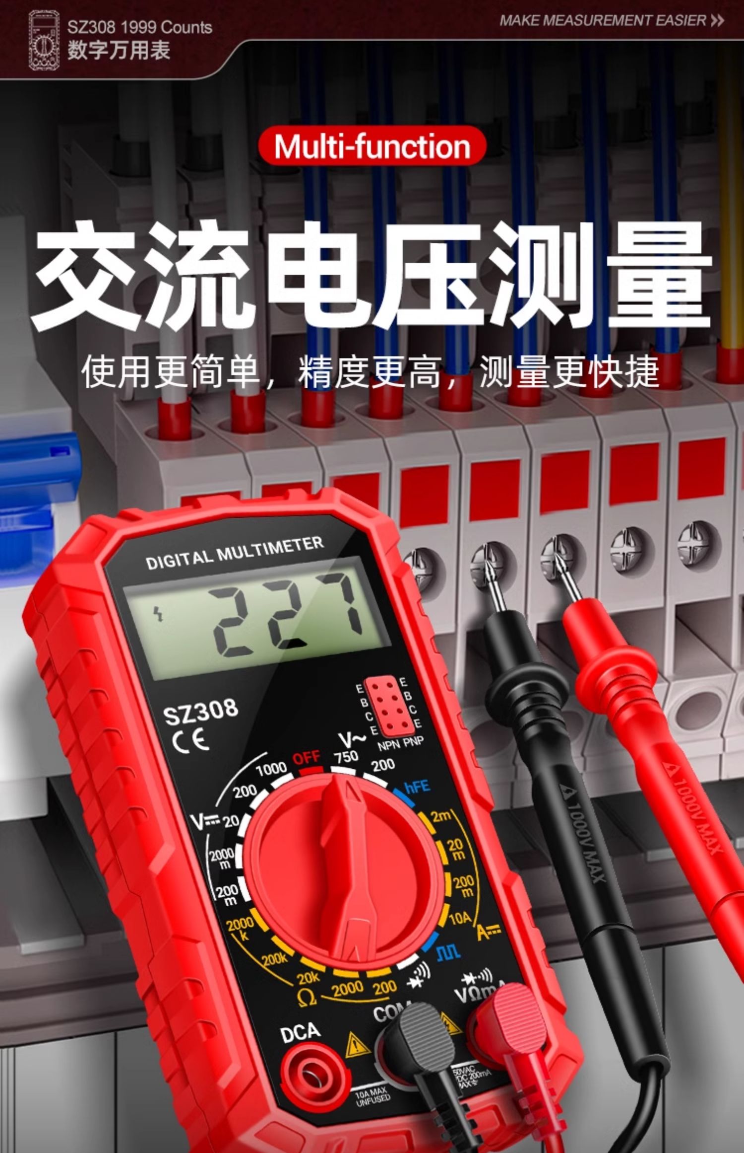 전기 멀티 미터 디지털 고정밀 다기능 작은 휴대용 디지털 디스플레이 미터 전압 측정 유지 보수 가구