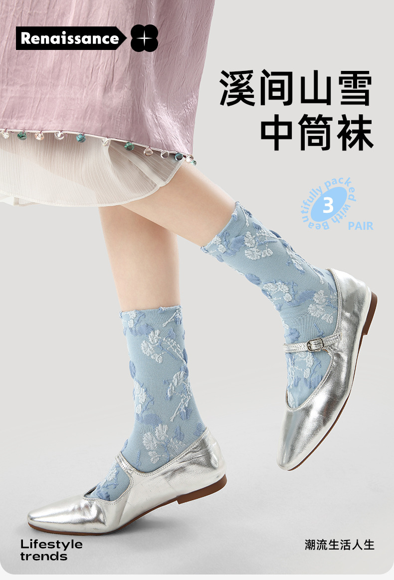 르네상스 오리지널 여성 양말 봄과 여름 복고풍 양각 양말 중견 예술 여성 유행 양말스토어 가기