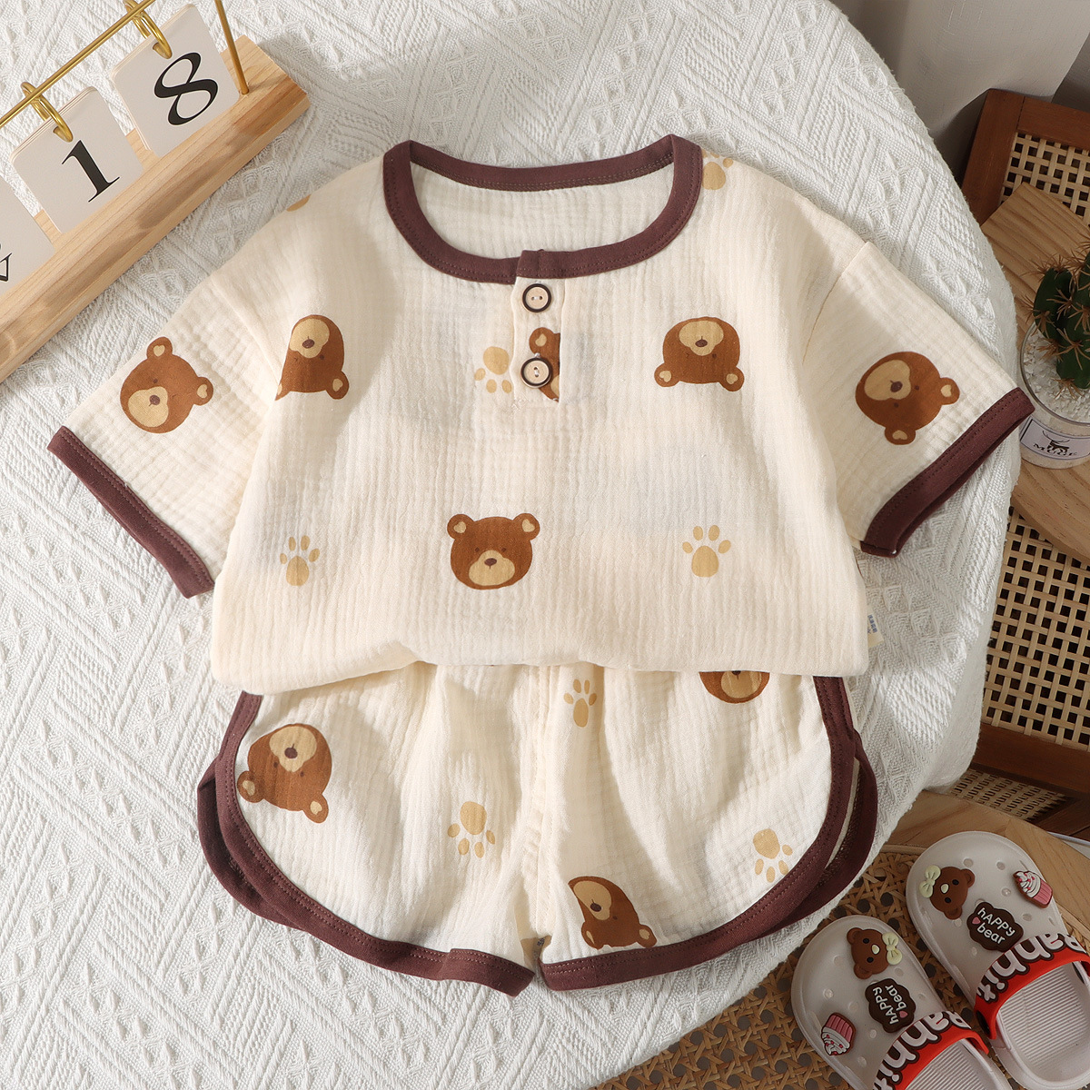 • 거즈반팔반바지-브라운베어헤드