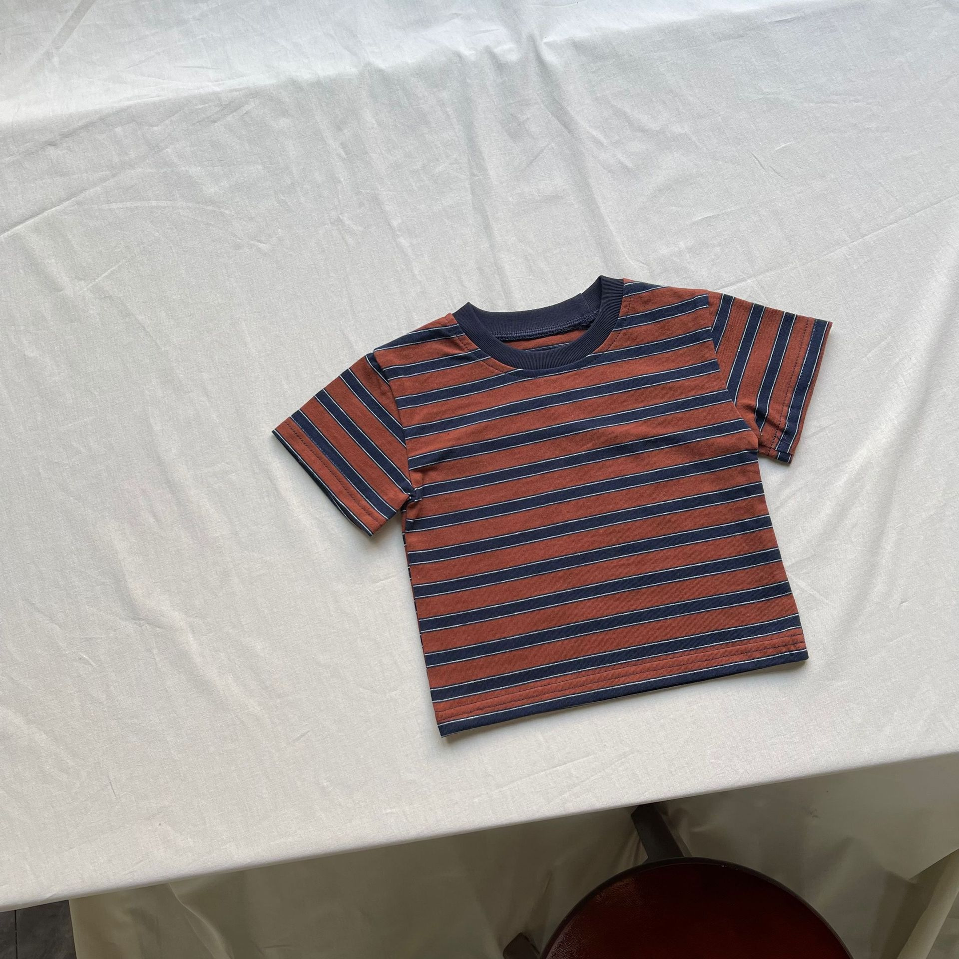 한국 스타일 인스 타 그램 스타일 여름 새 스타일 줄무늬 크루 넥 반팔 티셔츠 아기와 유아의 캐주얼 트렌디 심플 코튼 티셔츠