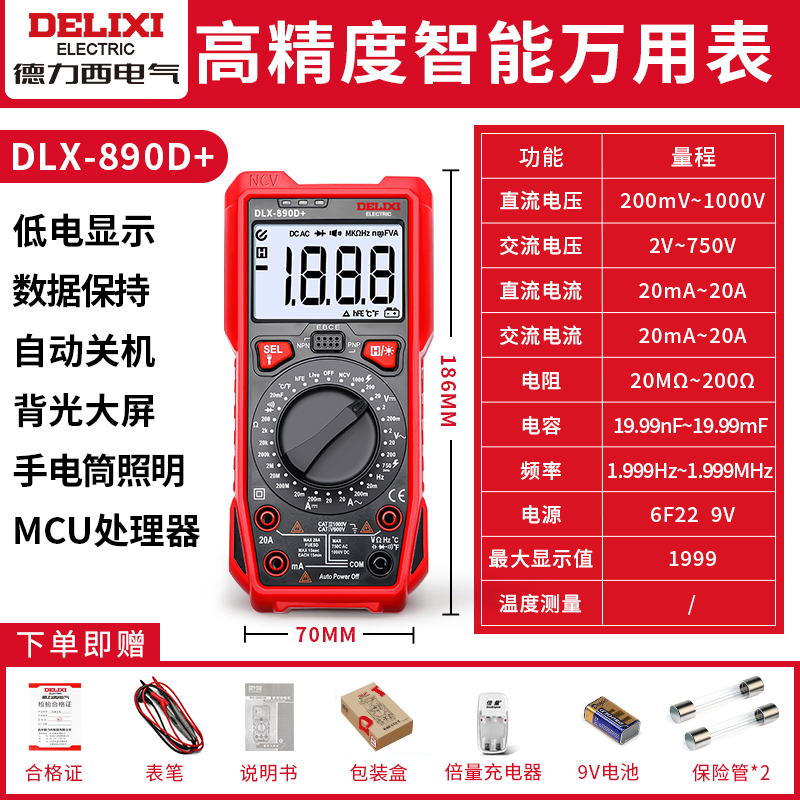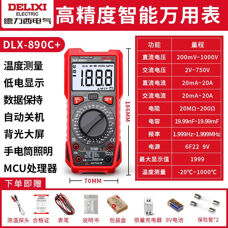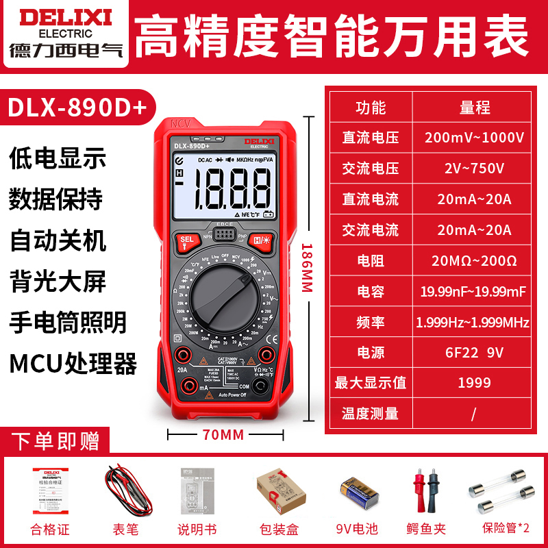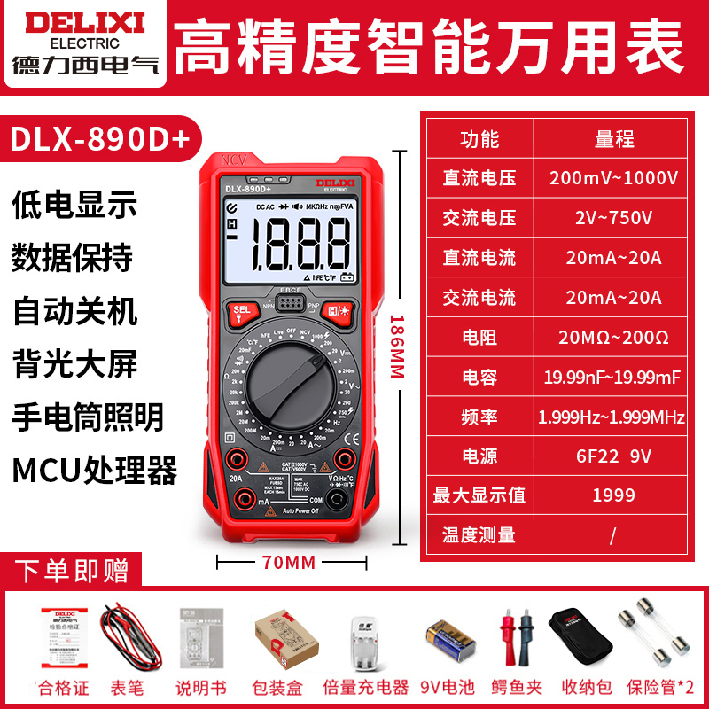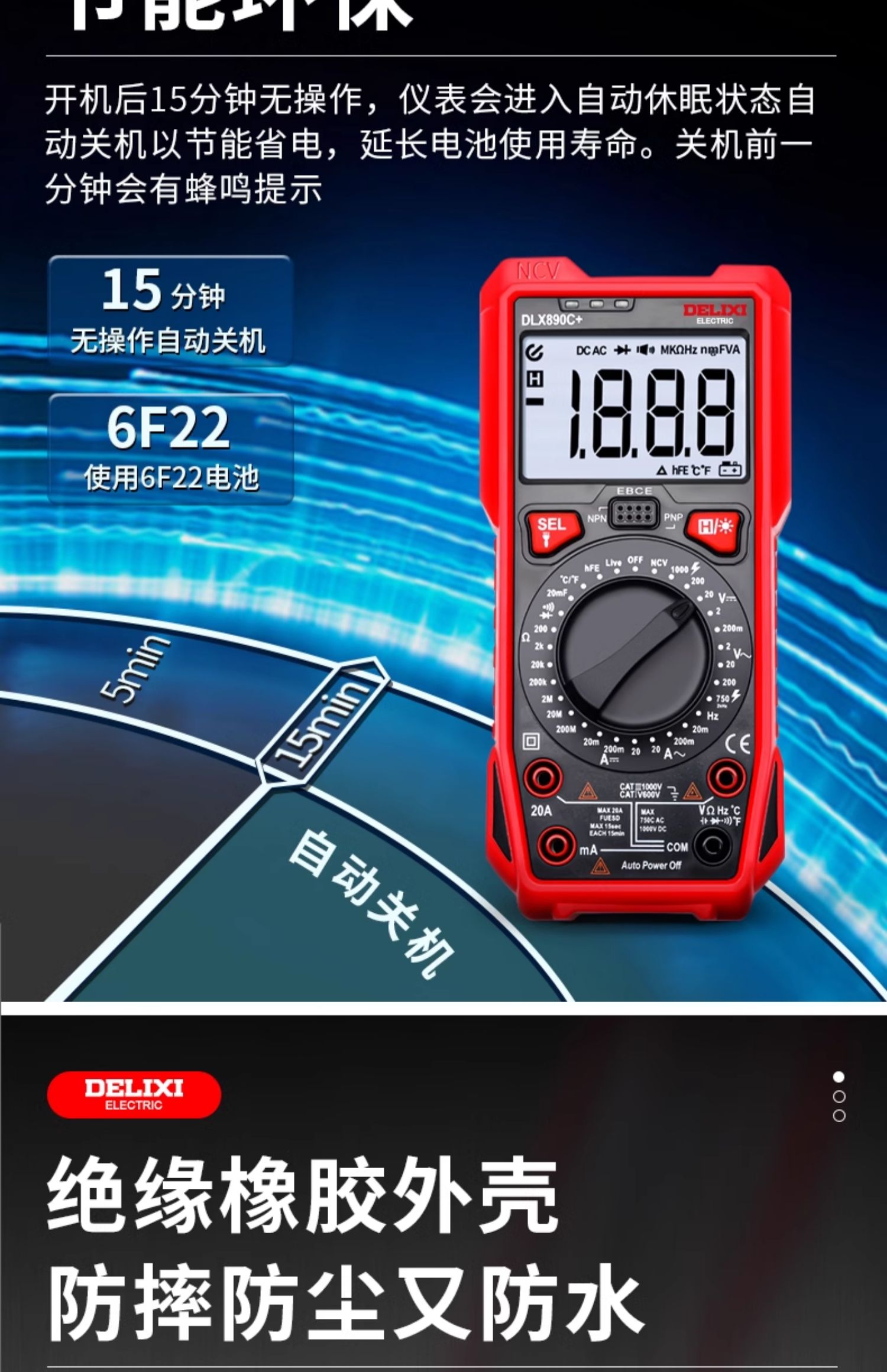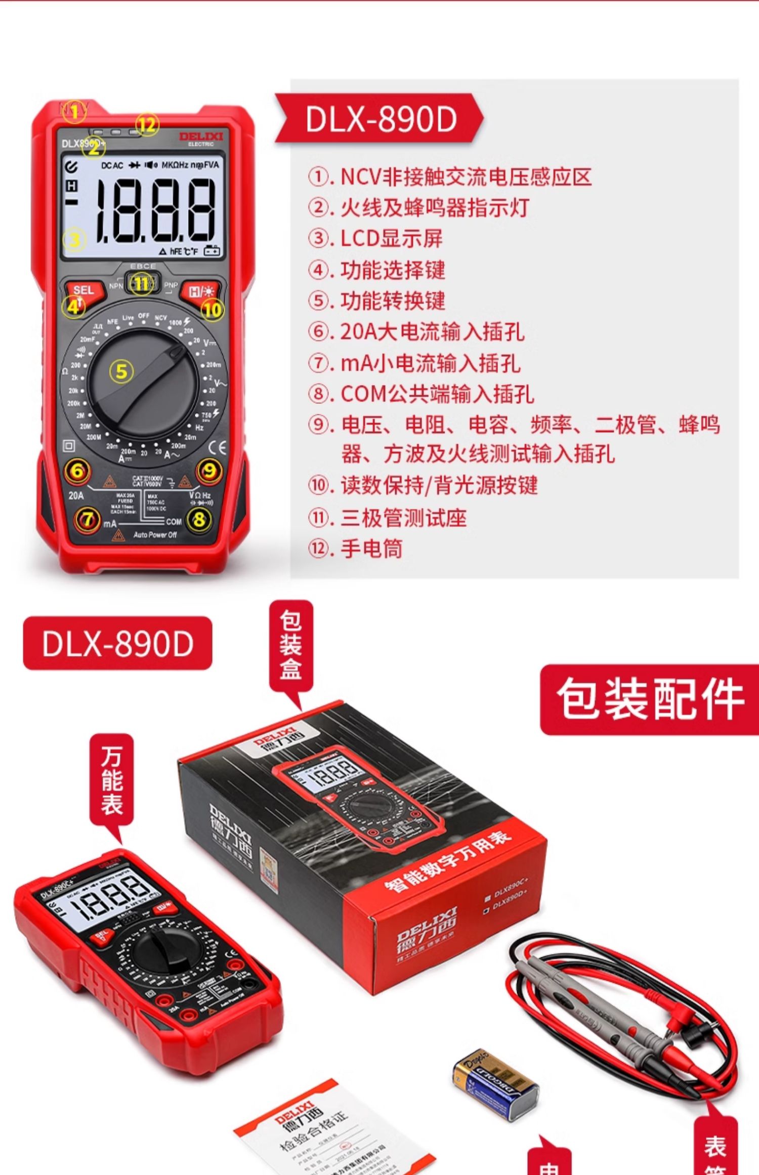 Delixi 멀티 미터 전기 유지 보수 디지털 고정밀 미터 완전 자동 지능형 안티 번 890D/C