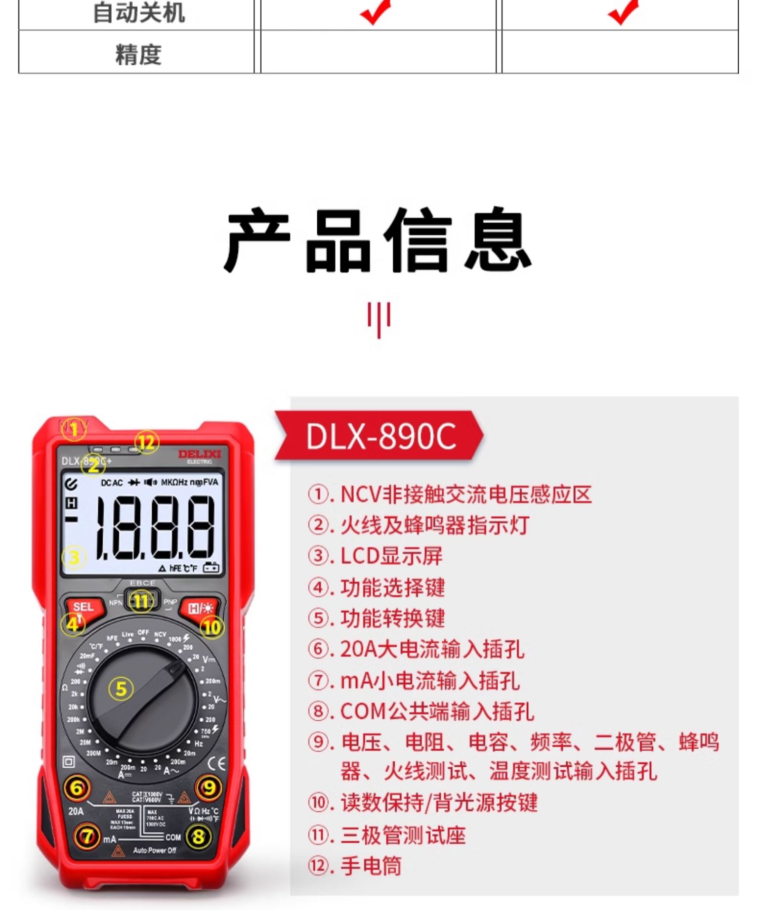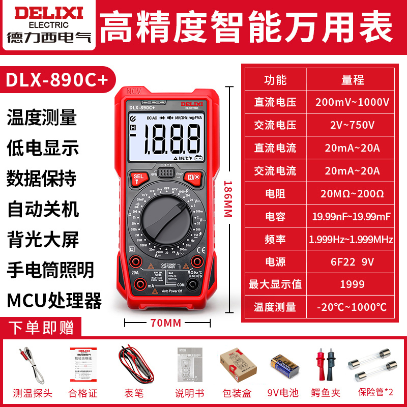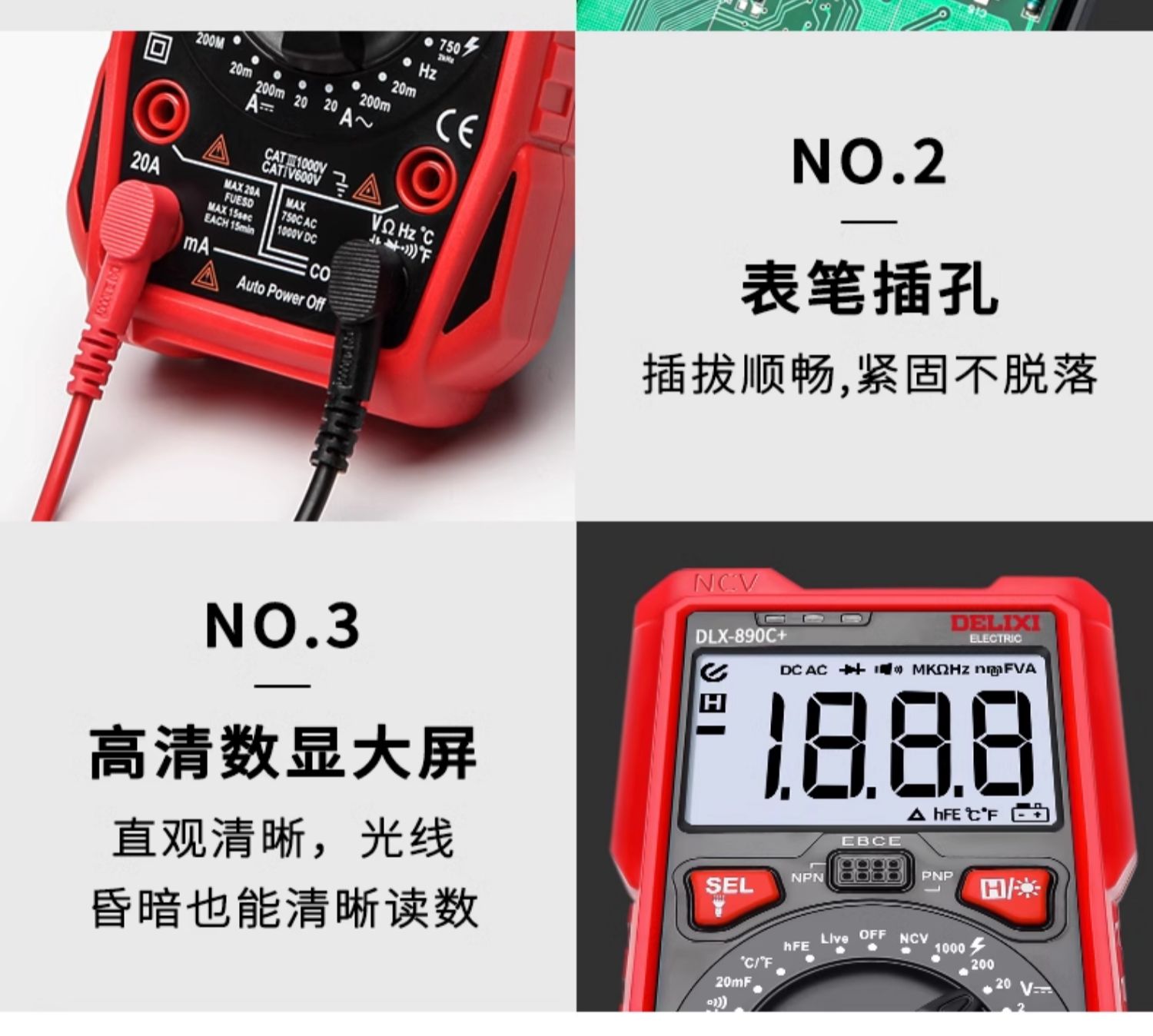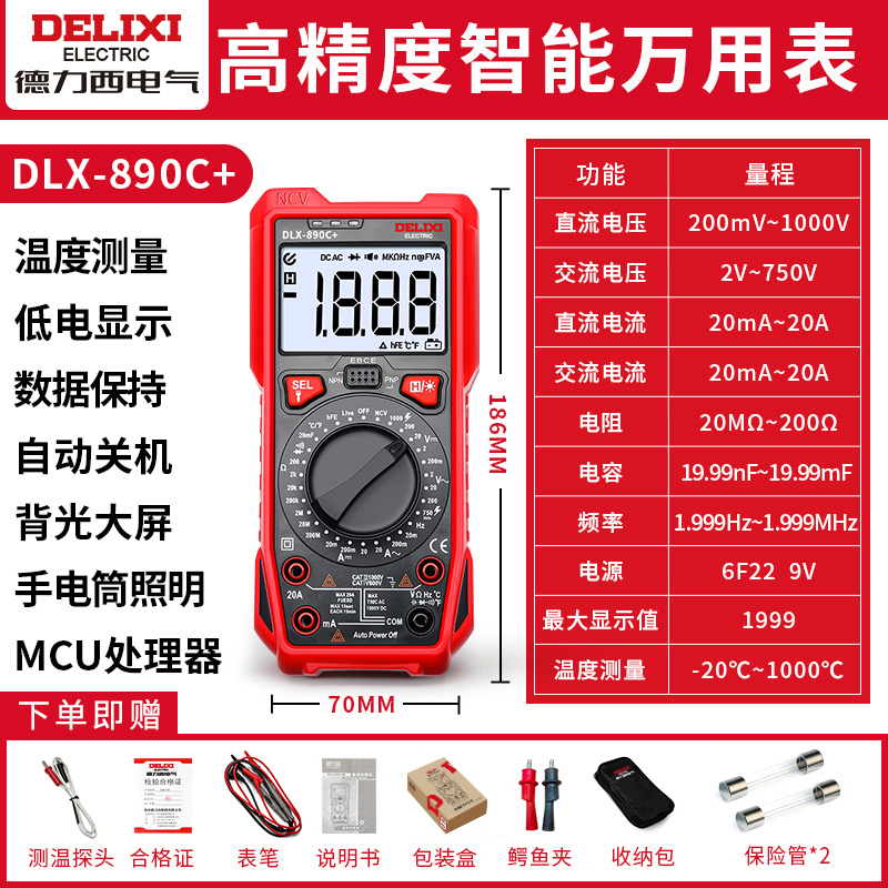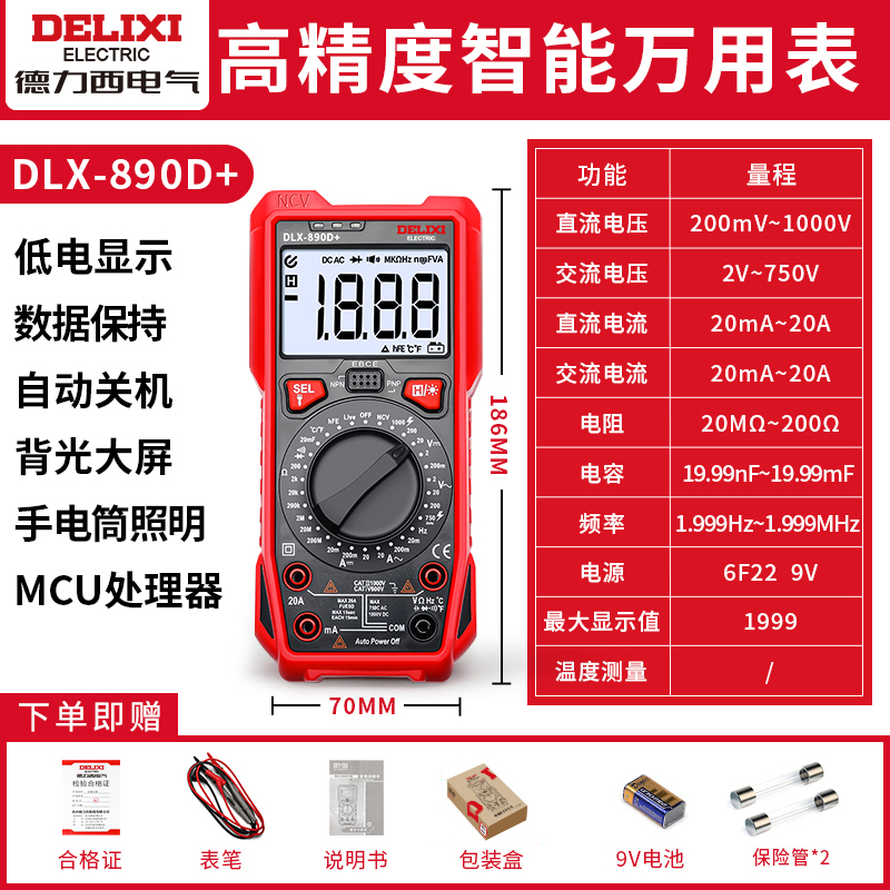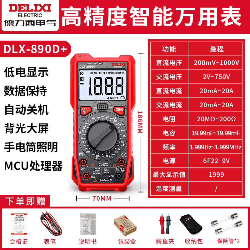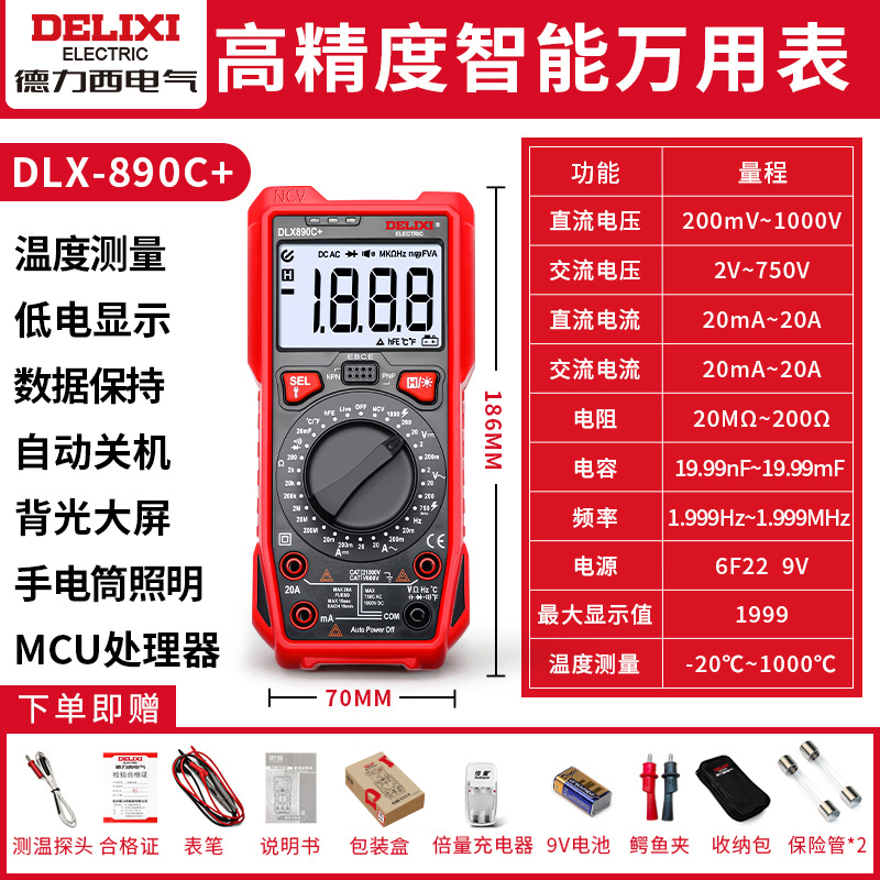 Delixi 멀티 미터 전기 유지 보수 디지털 고정밀 미터 완전 자동 지능형 안티 번 890D/C