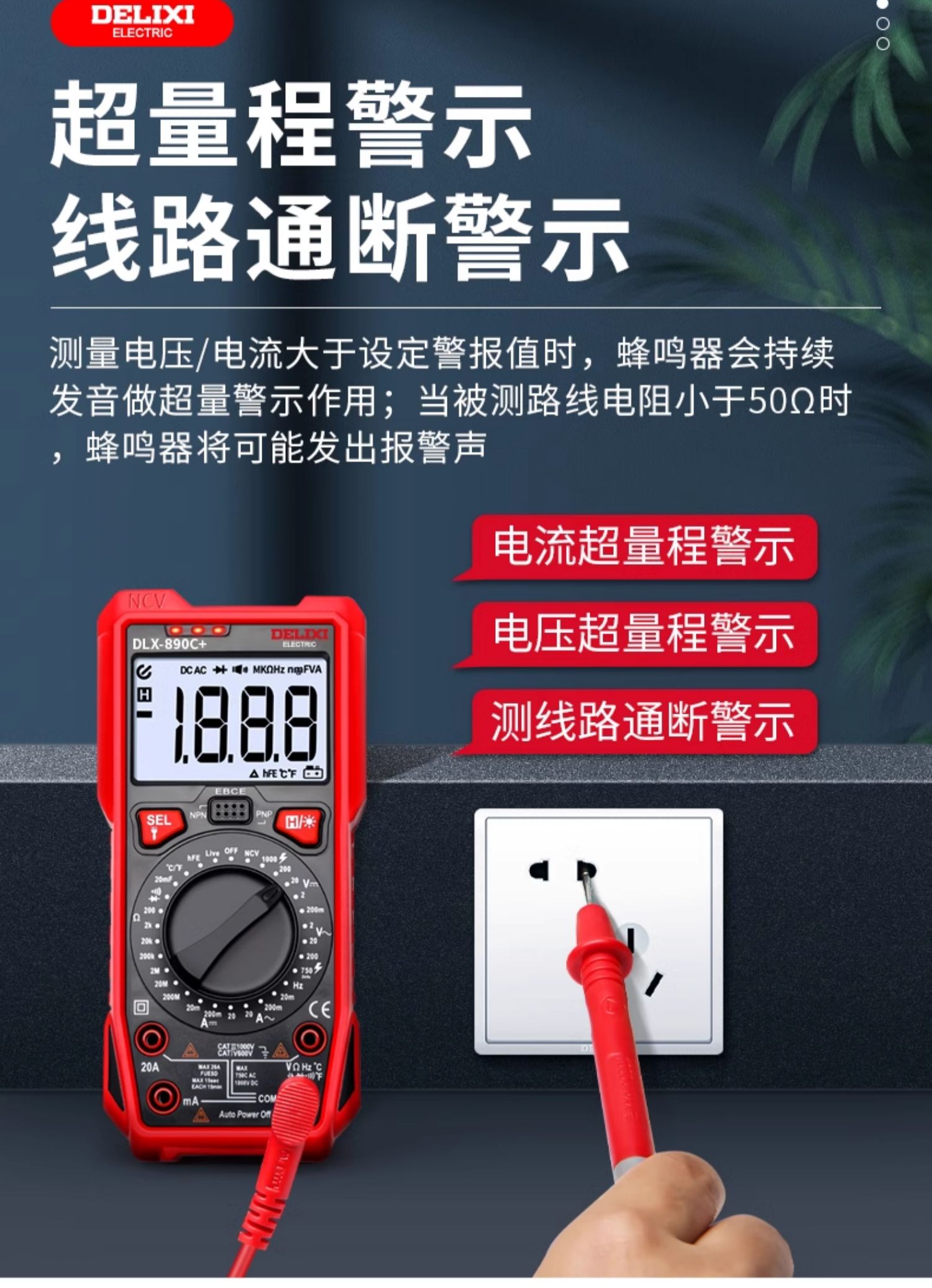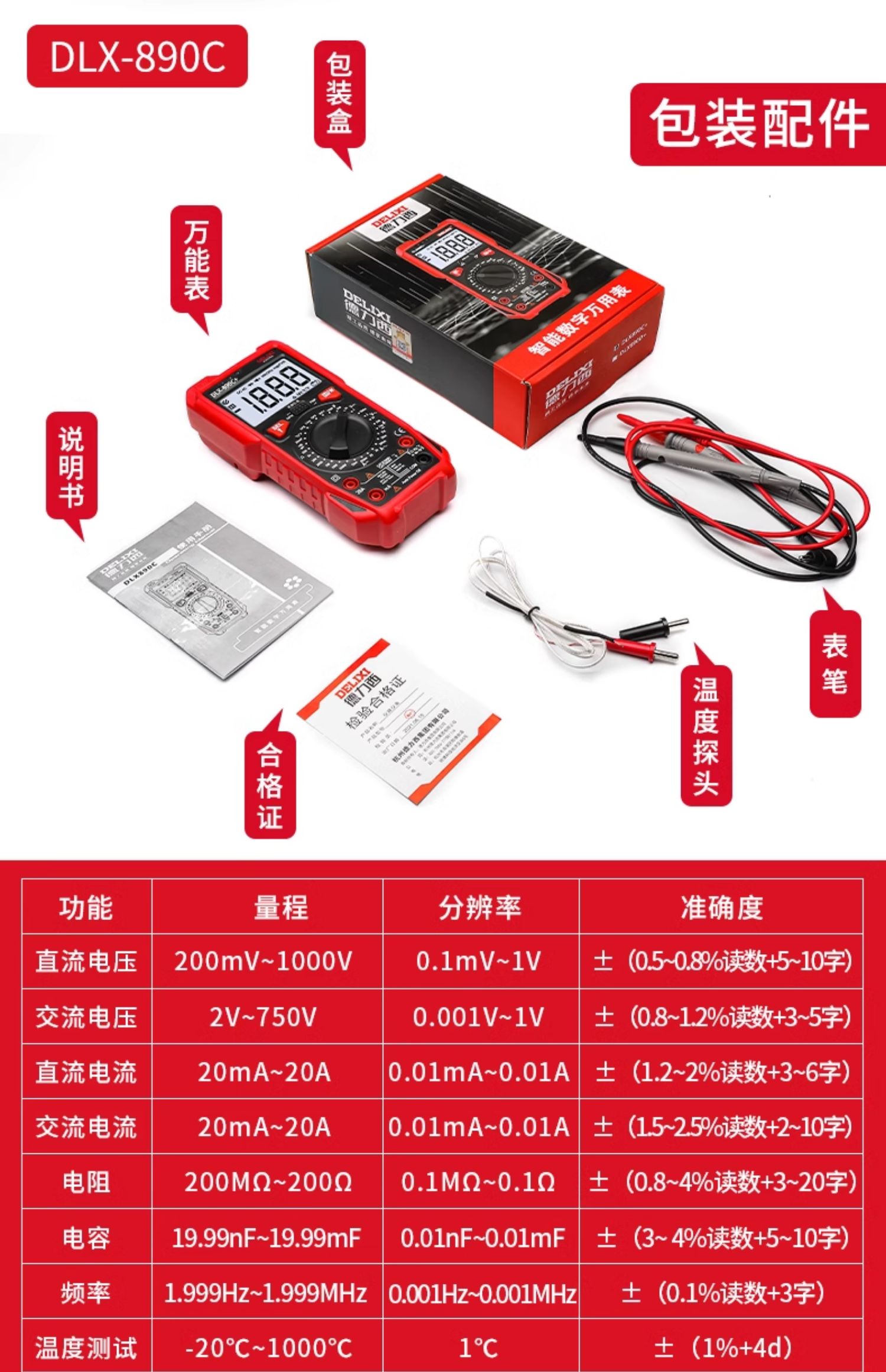 Delixi 멀티 미터 전기 유지 보수 디지털 고정밀 미터 완전 자동 지능형 안티 번 890D/C스토어 가기