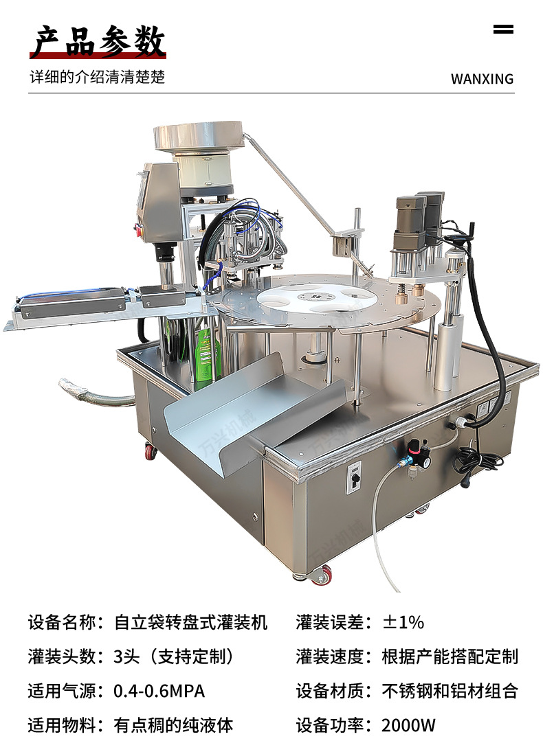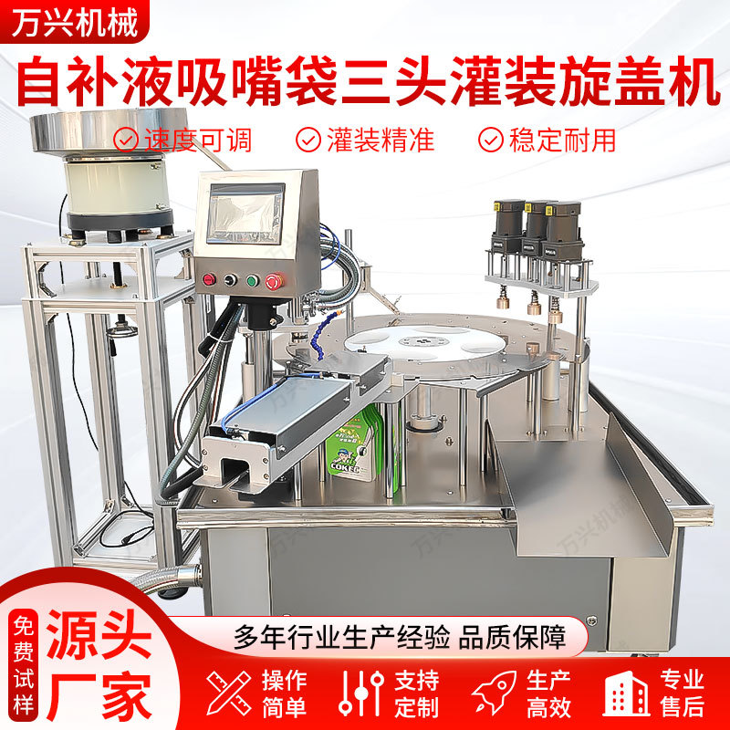완전 자동 3헤드 턴테이블 노즐 파우치 충전기 자체 보충 두유 음료 세탁 세제 스탠딩 파우치 충전기