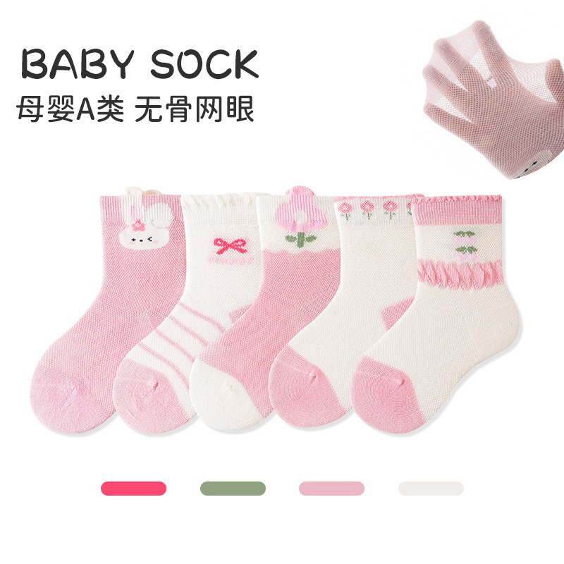 아기 양말 2025 봄 새로운 어린이 양말 여성 신생아 Combed Cotton 중간 튜브 양말 뼈없는 다리가없는 어린이 양말스토어 가기
