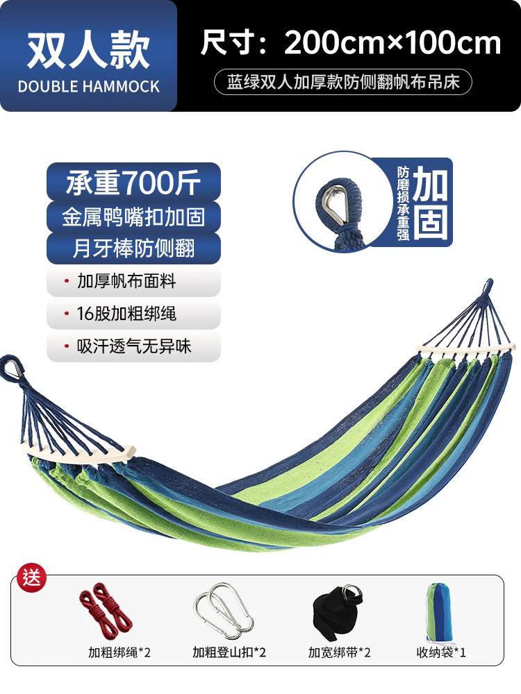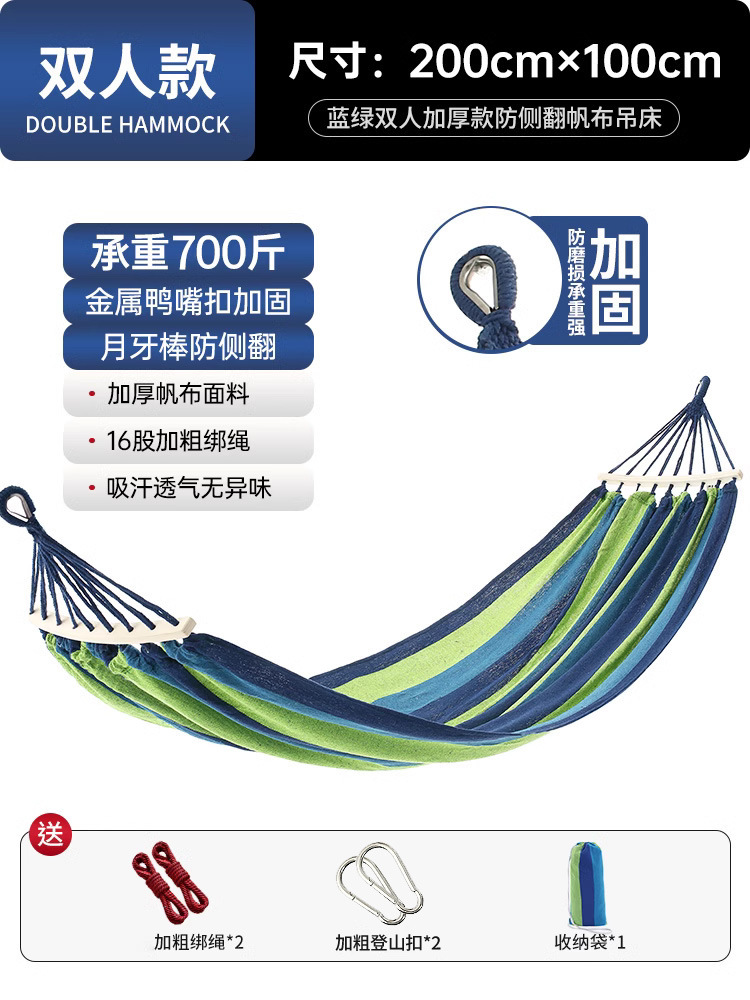 • [내하중 350kg / 전복 방지 원목] - 3인용 두꺼운 파란색과 녹색 강화 카라비너 +