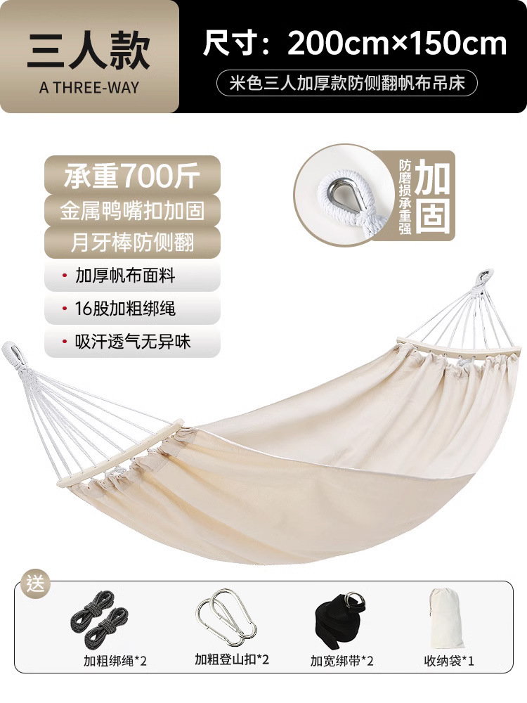 • [내하중 350kg / 전복 방지 원목] - 3인용 두꺼운 황백색 강화 카라비너 포함