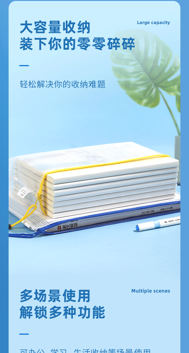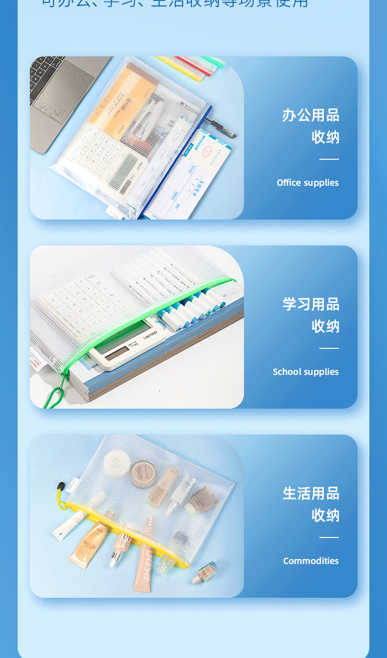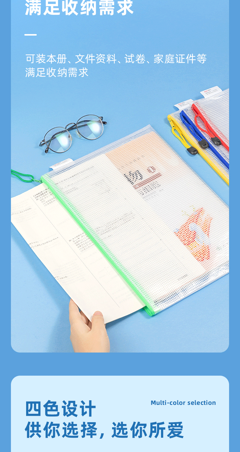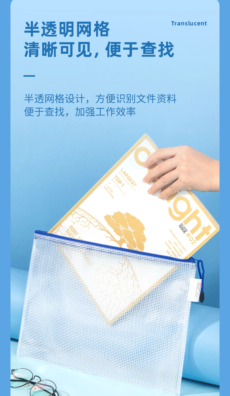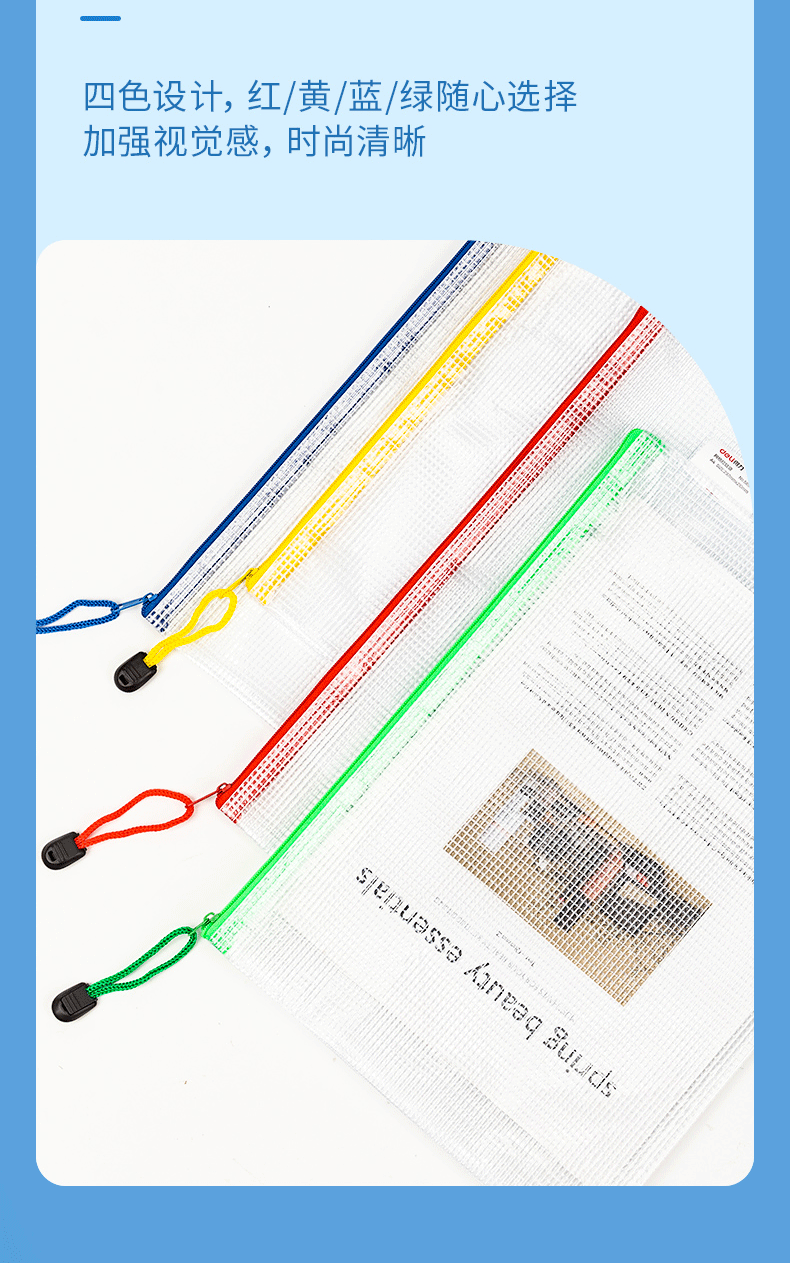 델리 문구 5654 지퍼 가방 문서 가방 투명 플라스틱 메쉬 가방 A4 서류 가방 가장자리 가방 정보 가방