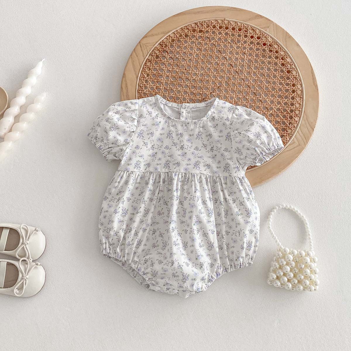 INS 스타일 아기 여름 옷 아기 소녀 꽃 프린트 점프 수트 신생아 스타일 버블 소매 반팔 공주 세트