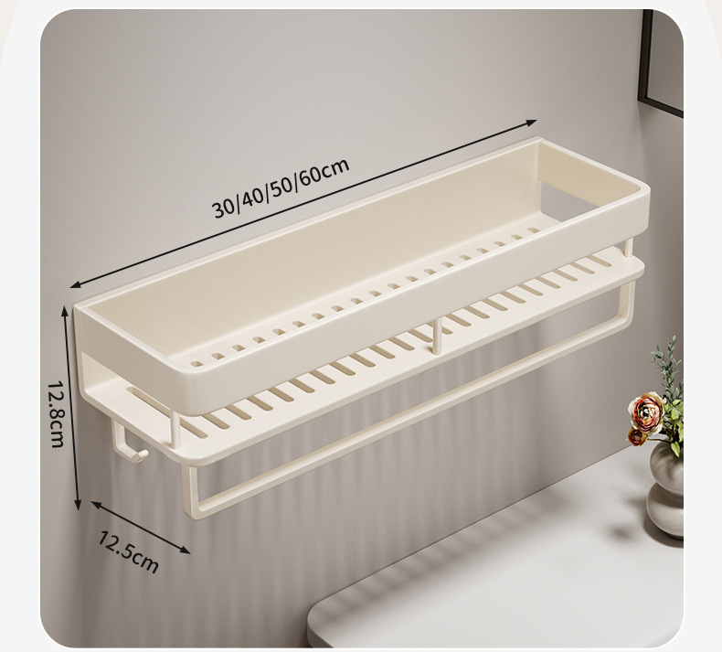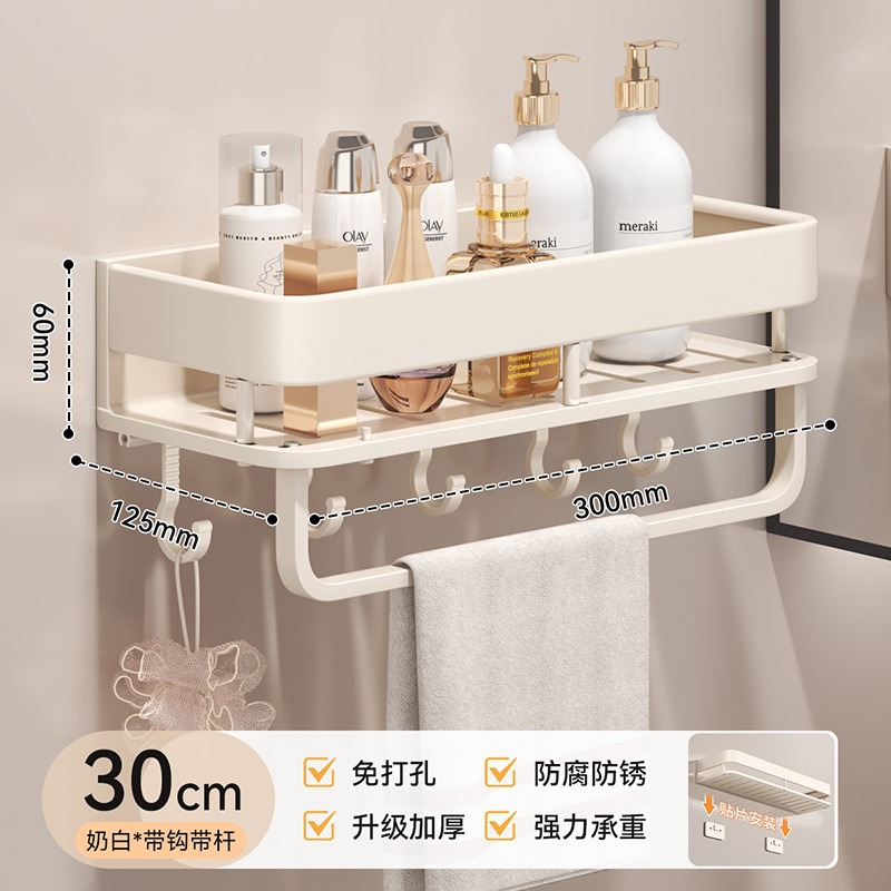 • 스페이스 알루미늄 밀크 화이트 단층 [분리 가능 및 청소 가능] 후크와 막대가 있는 30cm