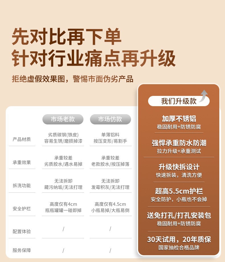 • 스페이스 알루미늄 밀크 화이트 더블 레이어 [청소를 위해 분리 가능] 후크와 막대가 있는 30cm+30cm