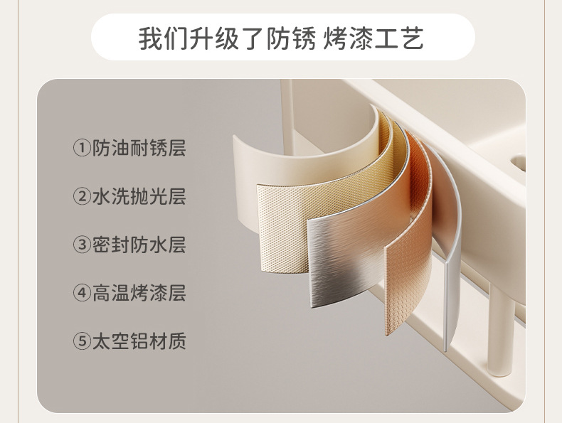 • 스페이스 알루미늄 밀크 화이트 더블 레이어 [청소를 위해 분리 가능] 후크와 막대가 있는 40cm+40cm