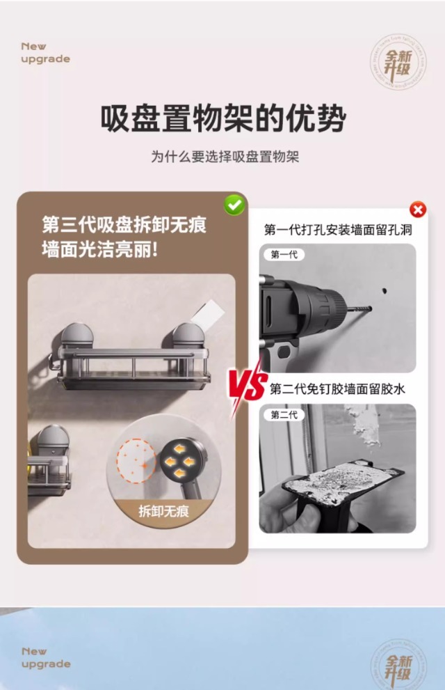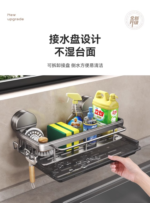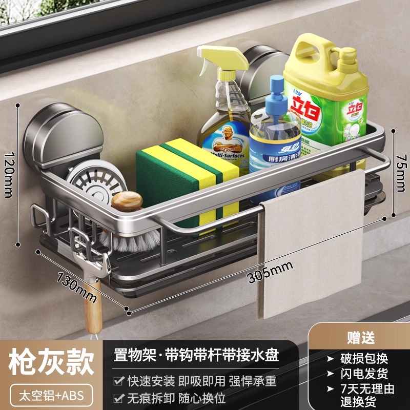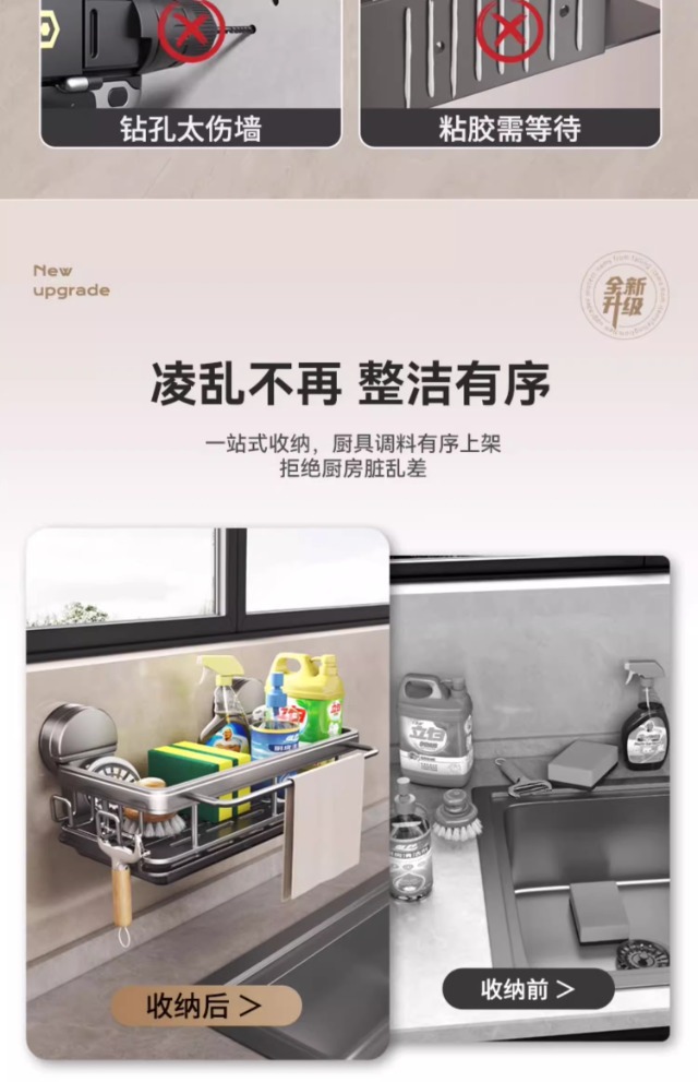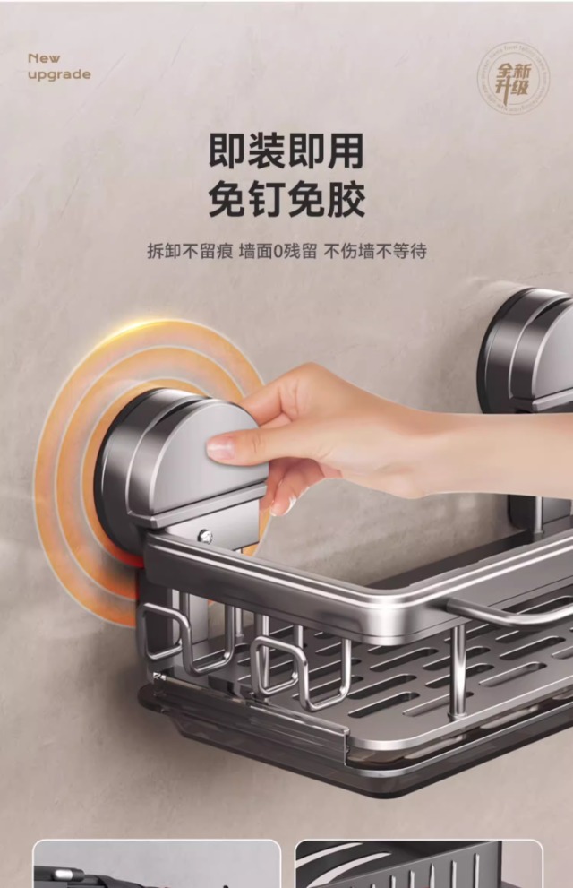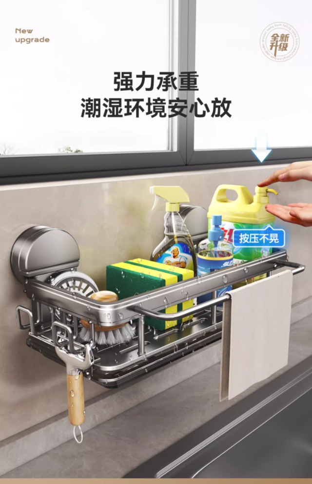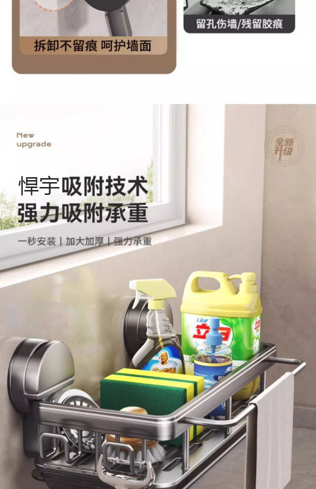 주방 닦아 랙 흡입 유형 다기능 싱크 드레인 랙 스토리지 랙 접시 헝겊 구멍이없는 벽 교수형 스토리지 랙