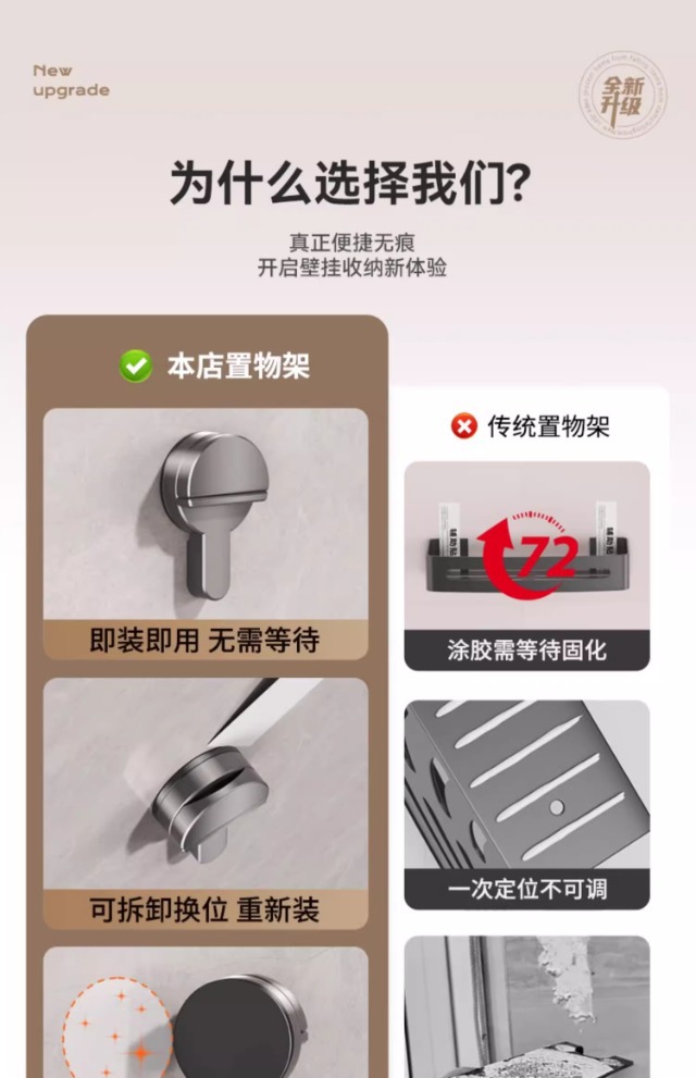 • [심리스 스티커] 건그레이 걸레 수납선반