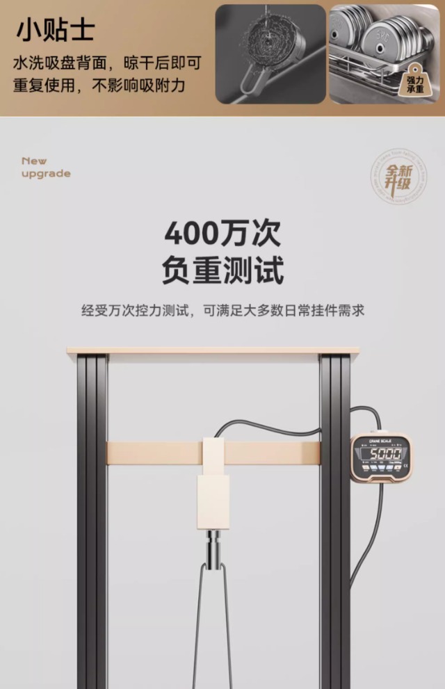 • [업그레이드된 더블 후크 모델] 건그레이 더블 흡착컵 걸레 보관함