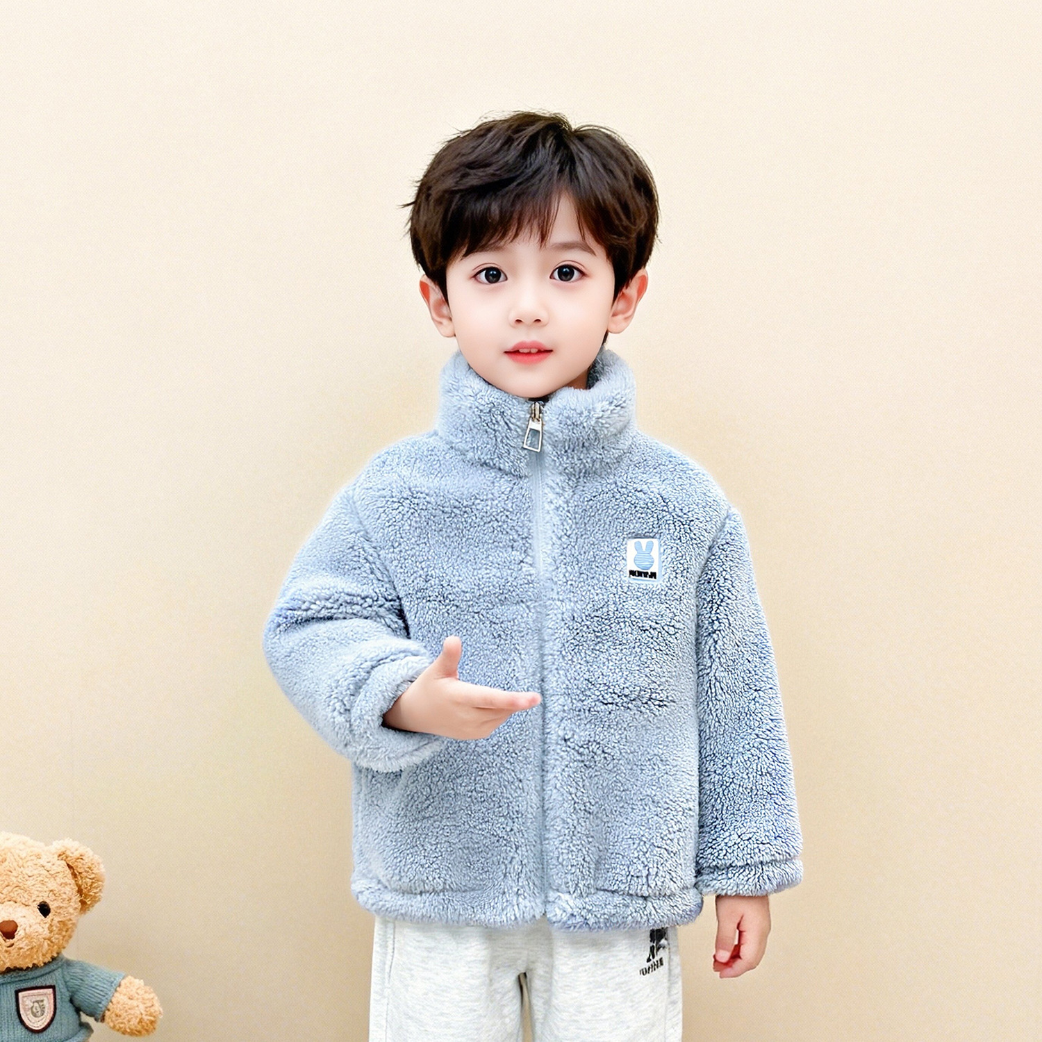 소년과 소녀를위한 새로운 가을, 겨울 어린이 플란넬 재킷, 다채로운 산호 벨벳 재킷, 단색 벨벳 탑, 아동복스토어 가기