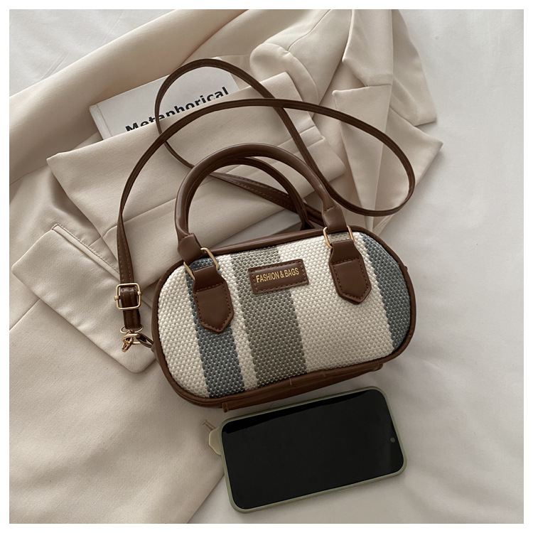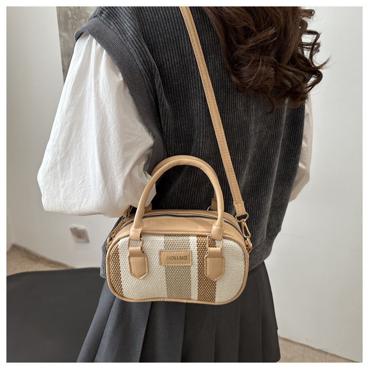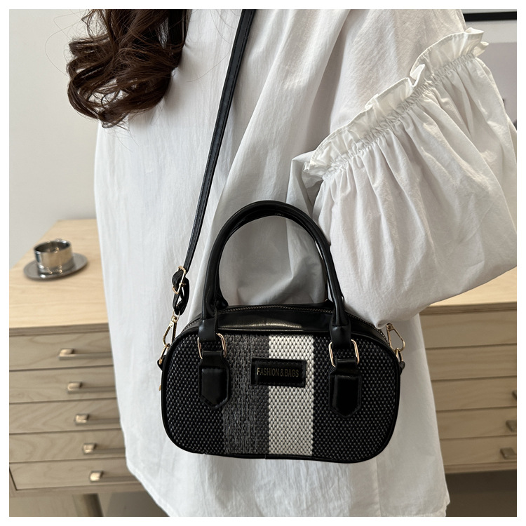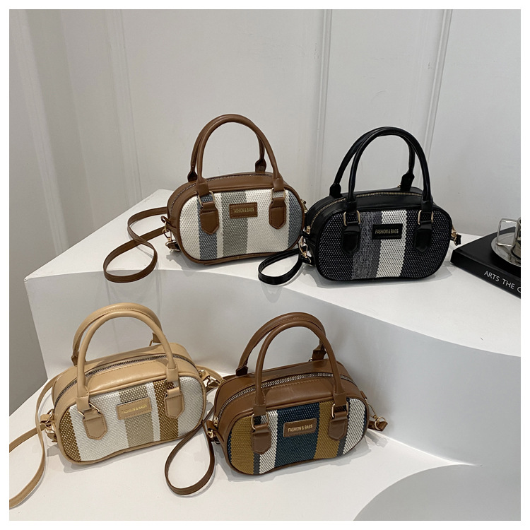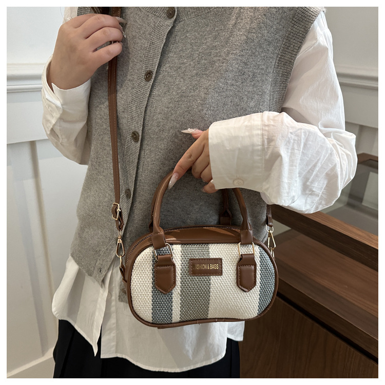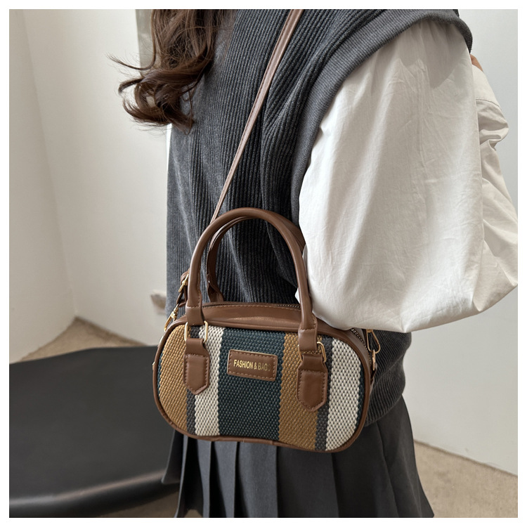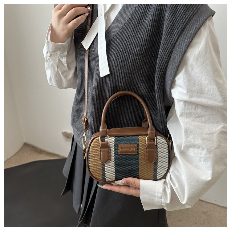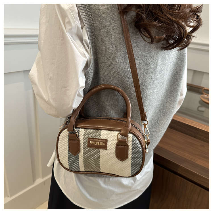 질감 레트로 스트라이프 콘트라스트 컬러 휴대용 2025 새로운 간단한 유행 보스턴 어깨 크로스 바디 백