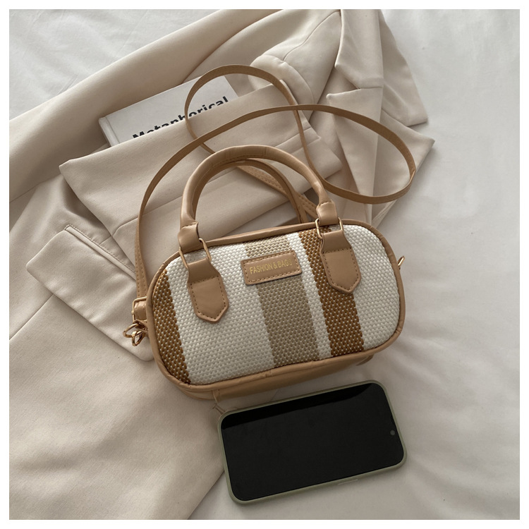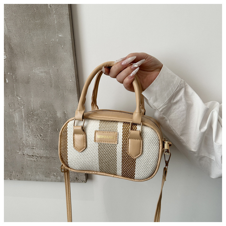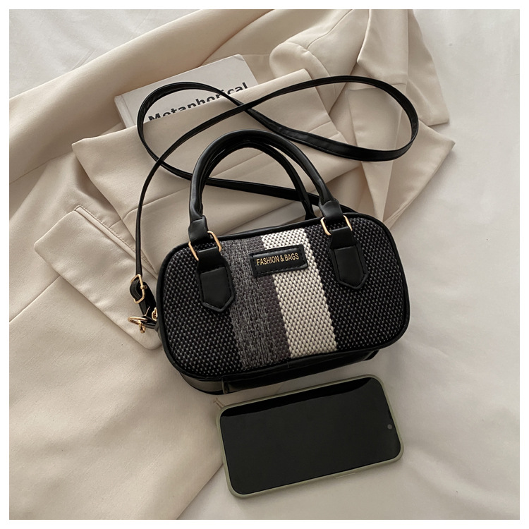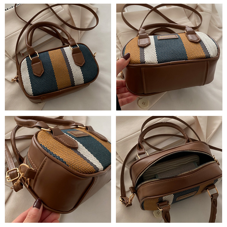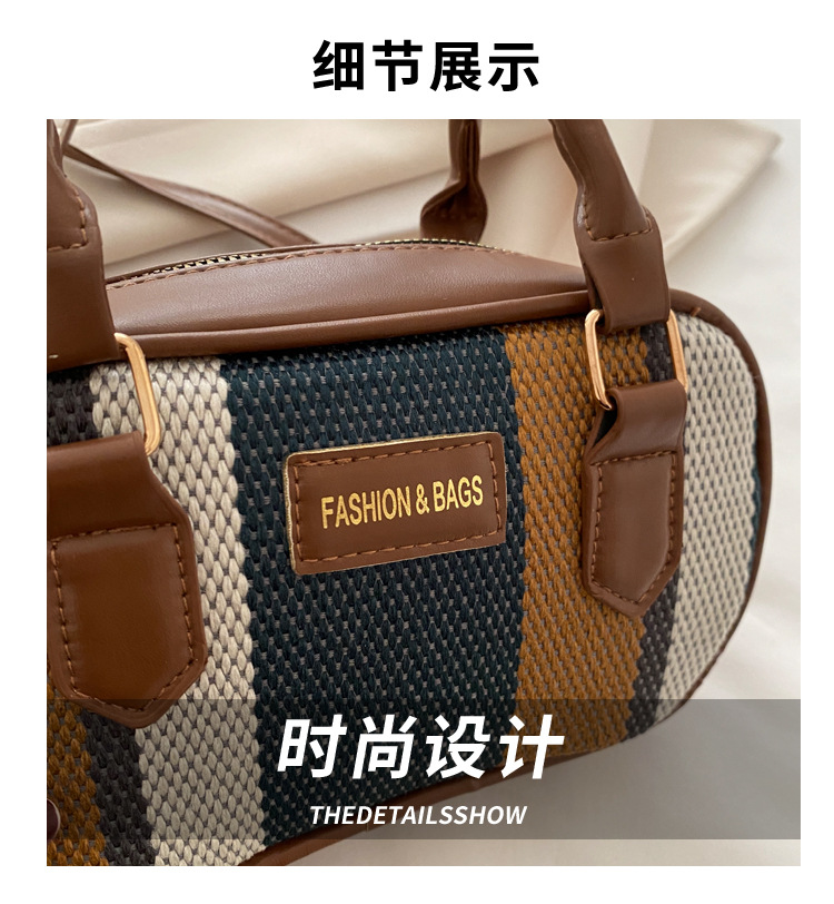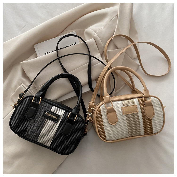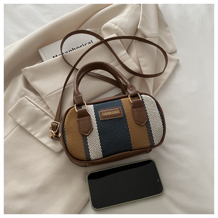 질감 레트로 스트라이프 콘트라스트 컬러 휴대용 2025 새로운 간단한 유행 보스턴 어깨 크로스 바디 백