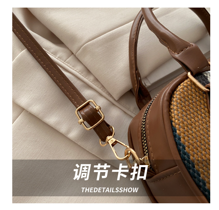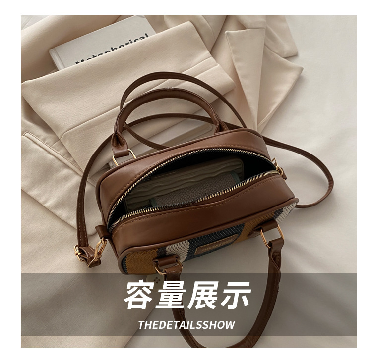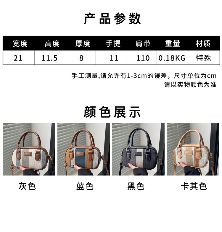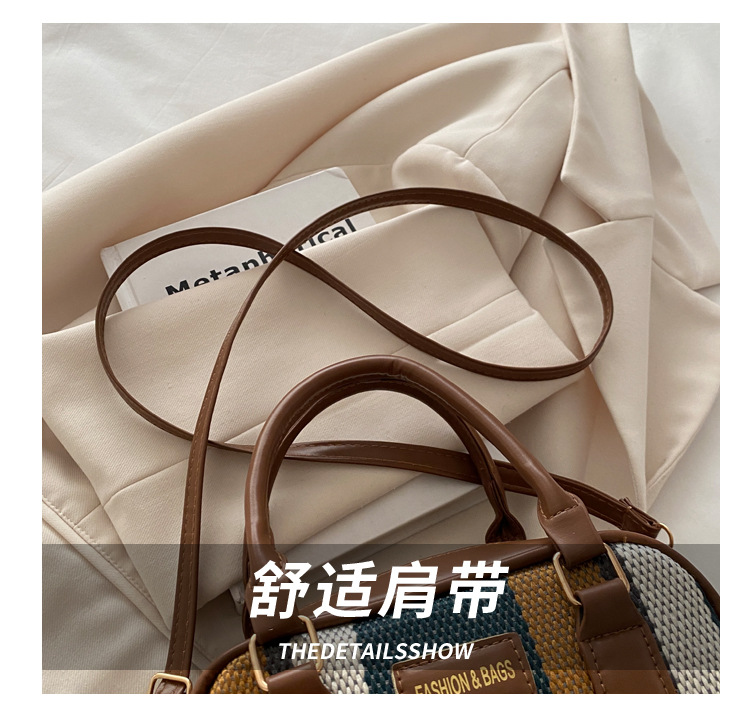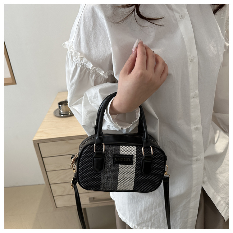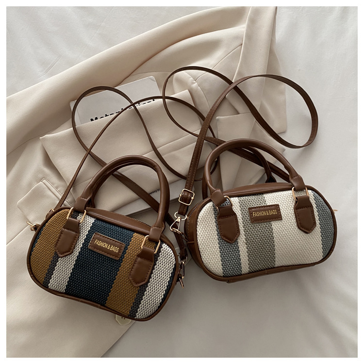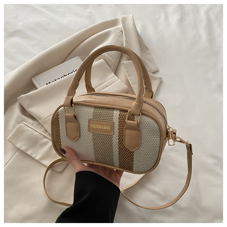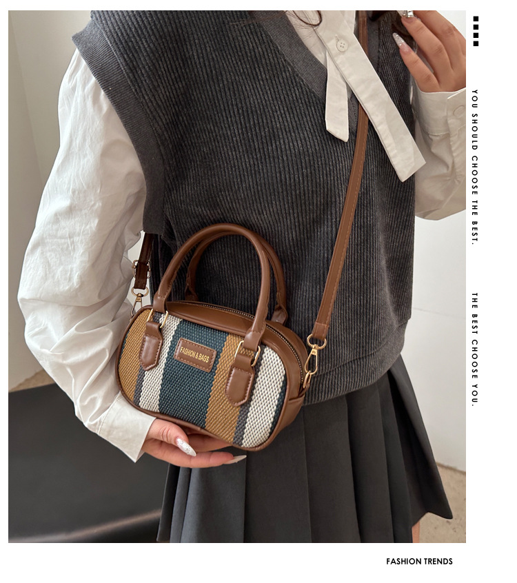 질감 레트로 스트라이프 콘트라스트 컬러 휴대용 2025 새로운 간단한 유행 보스턴 어깨 크로스 바디 백
