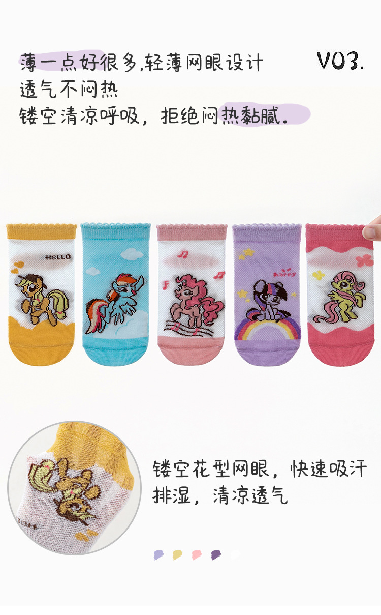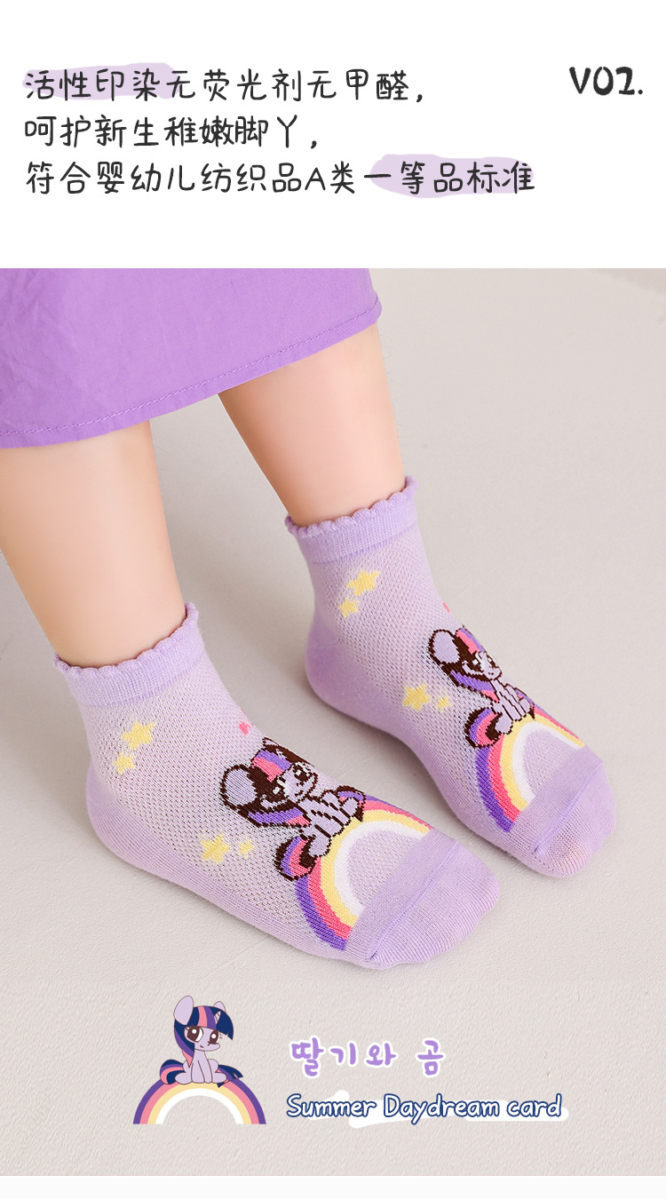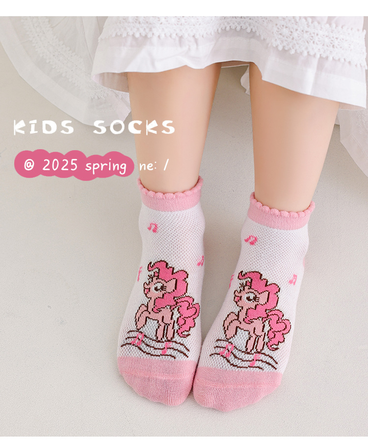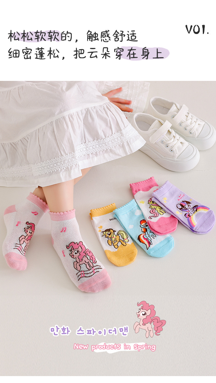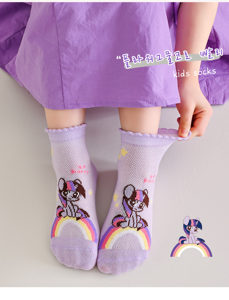 2025 봄 새로운 어린이 양말 클래스 A 만화 귀여운 땀 흡수되지 않은 발 무지개 말 시리즈 메쉬 양말