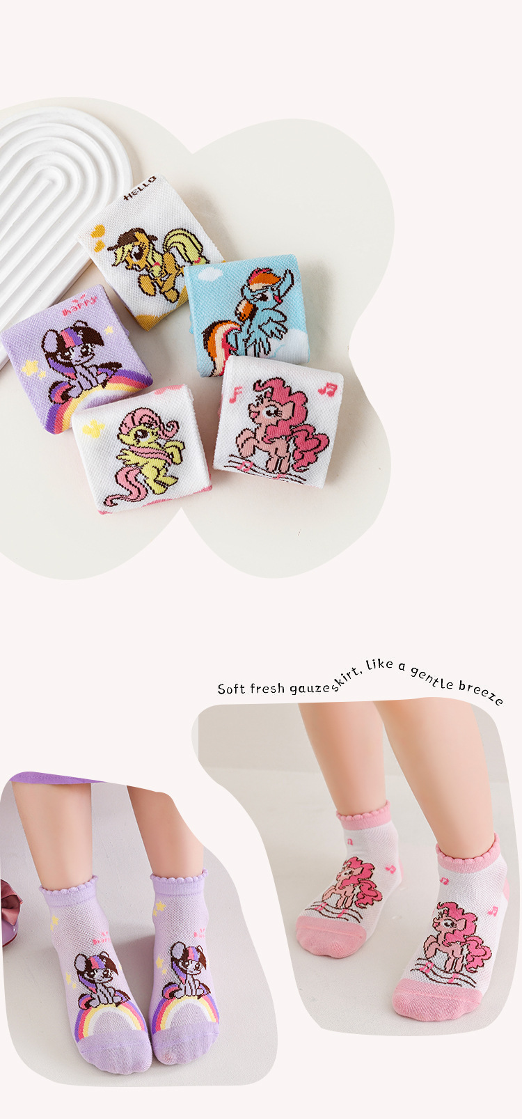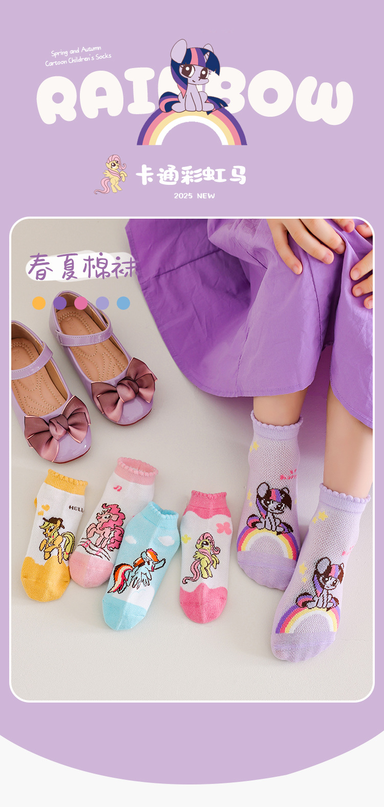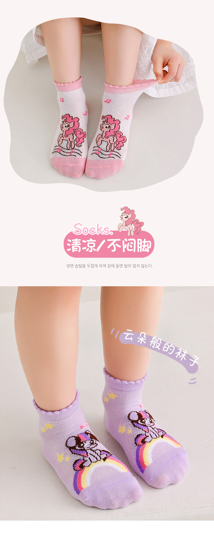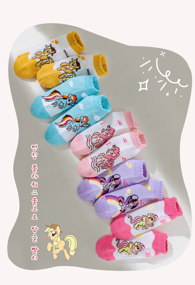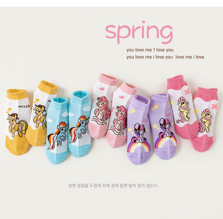 2025 봄 새로운 어린이 양말 클래스 A 만화 귀여운 땀 흡수되지 않은 발 무지개 말 시리즈 메쉬 양말스토어 가기