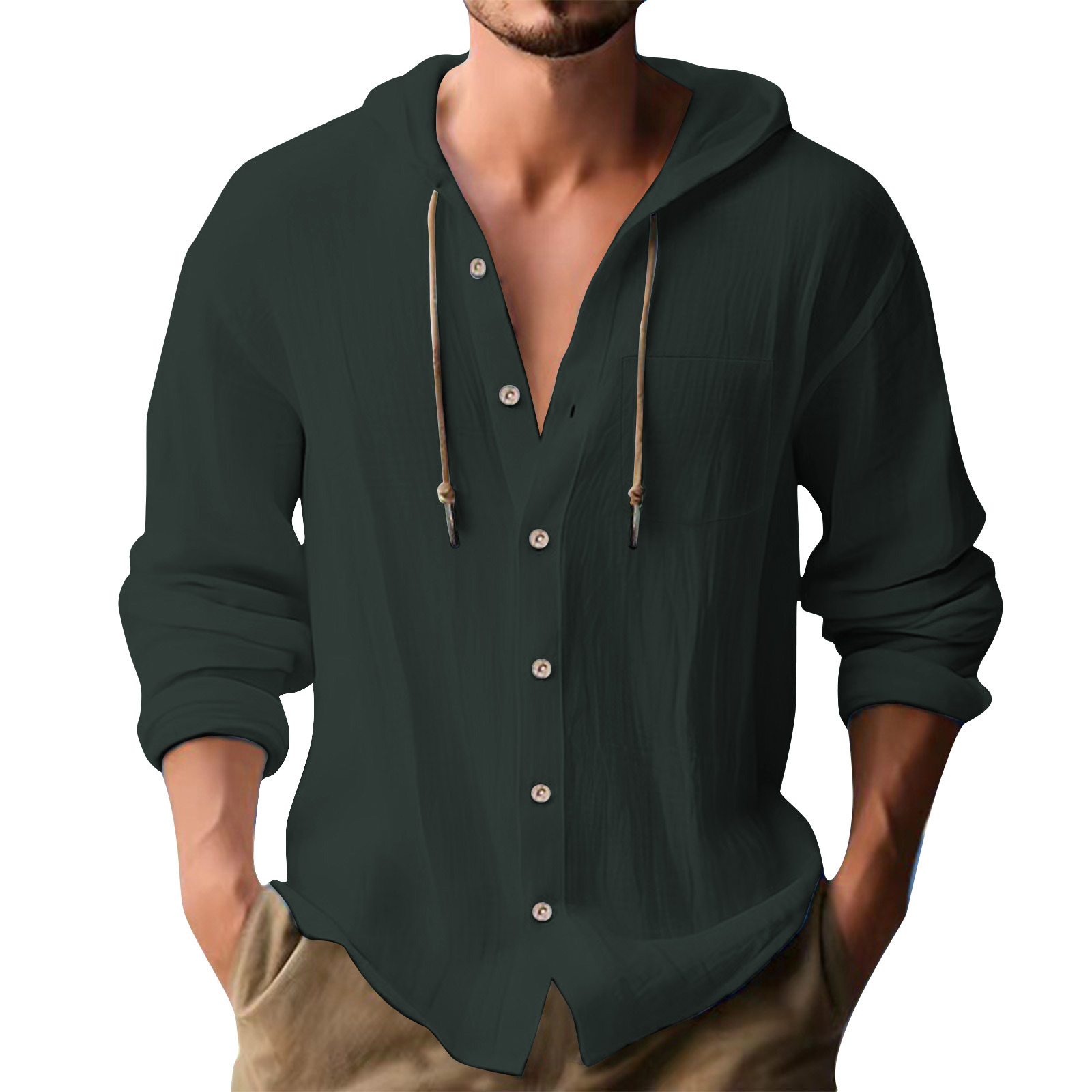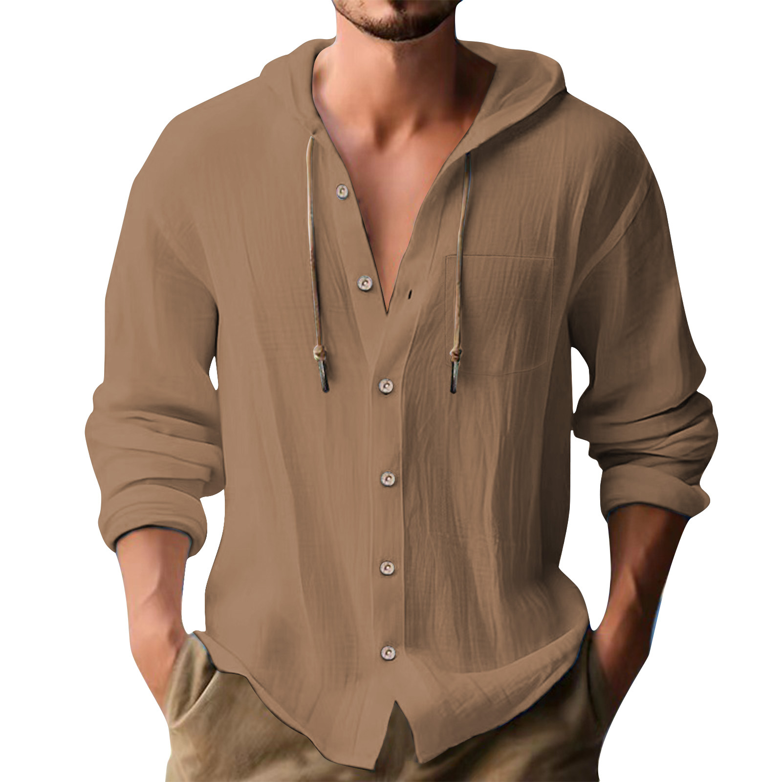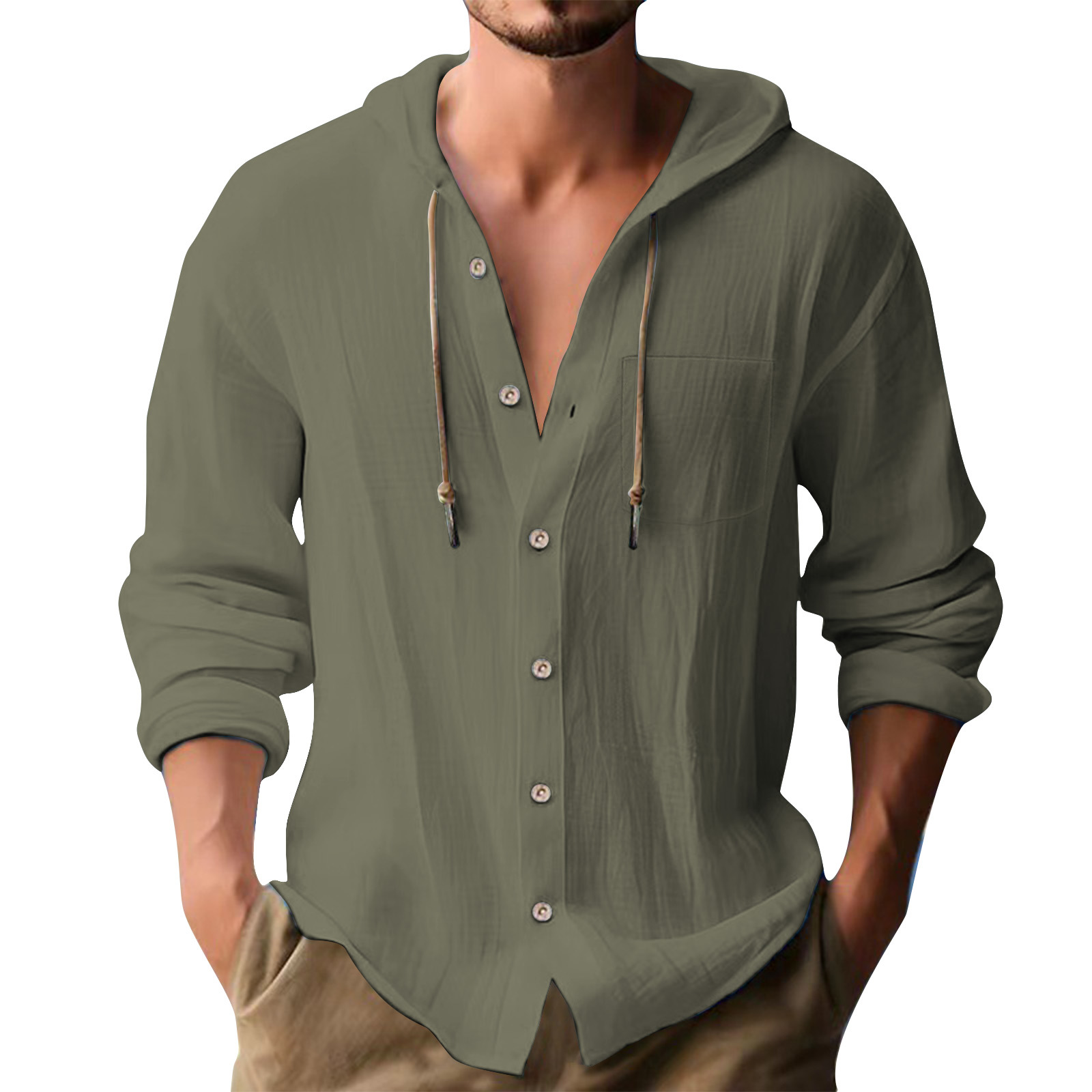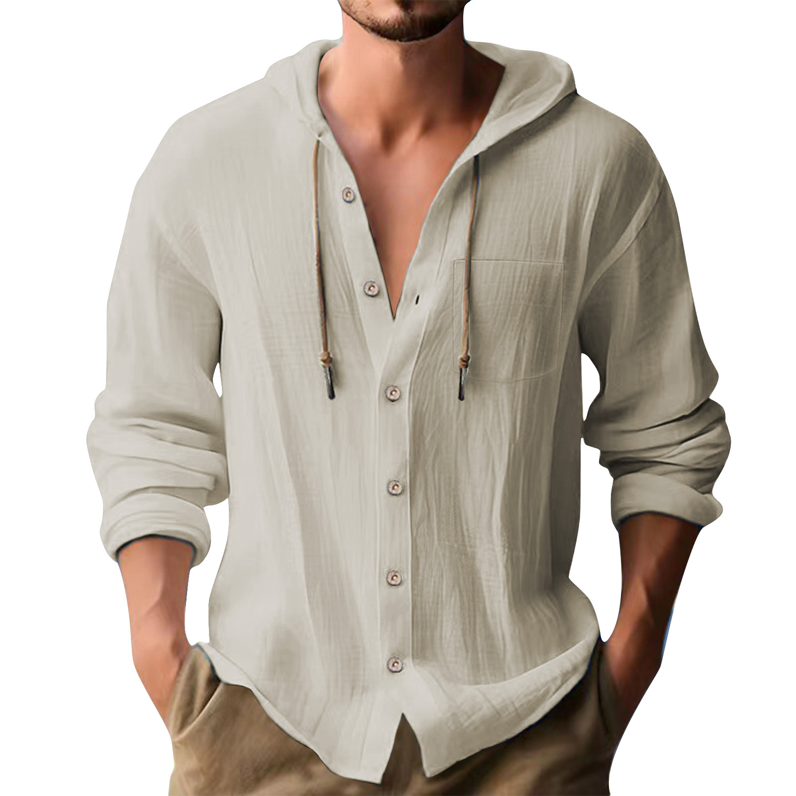 국경을 넘는 유럽과 미국 2025 새로운 핫 스포츠 트렌디 후드 티셔츠 솔리드 컬러 코튼 및 리넨 캐주얼 긴 소매 남성용 셔츠스토어 가기