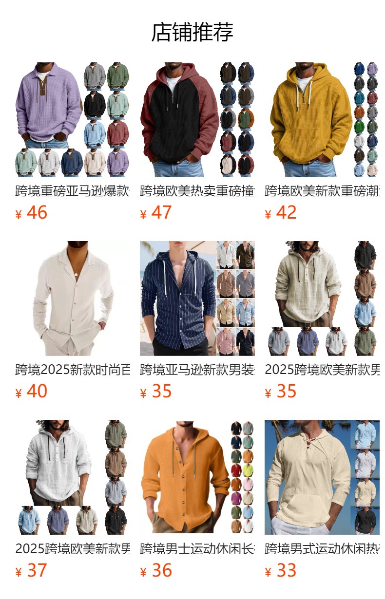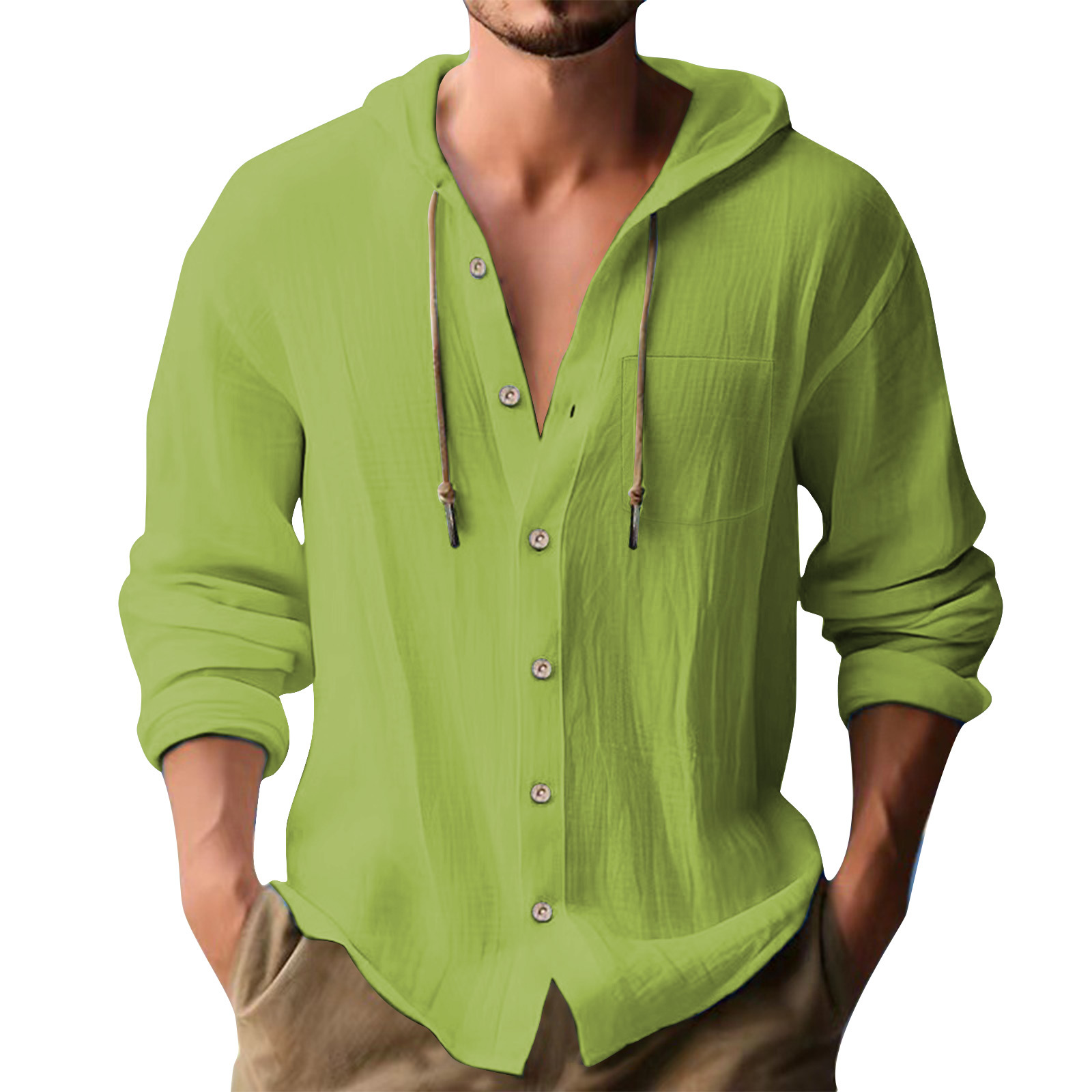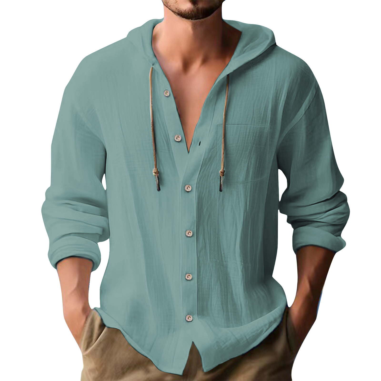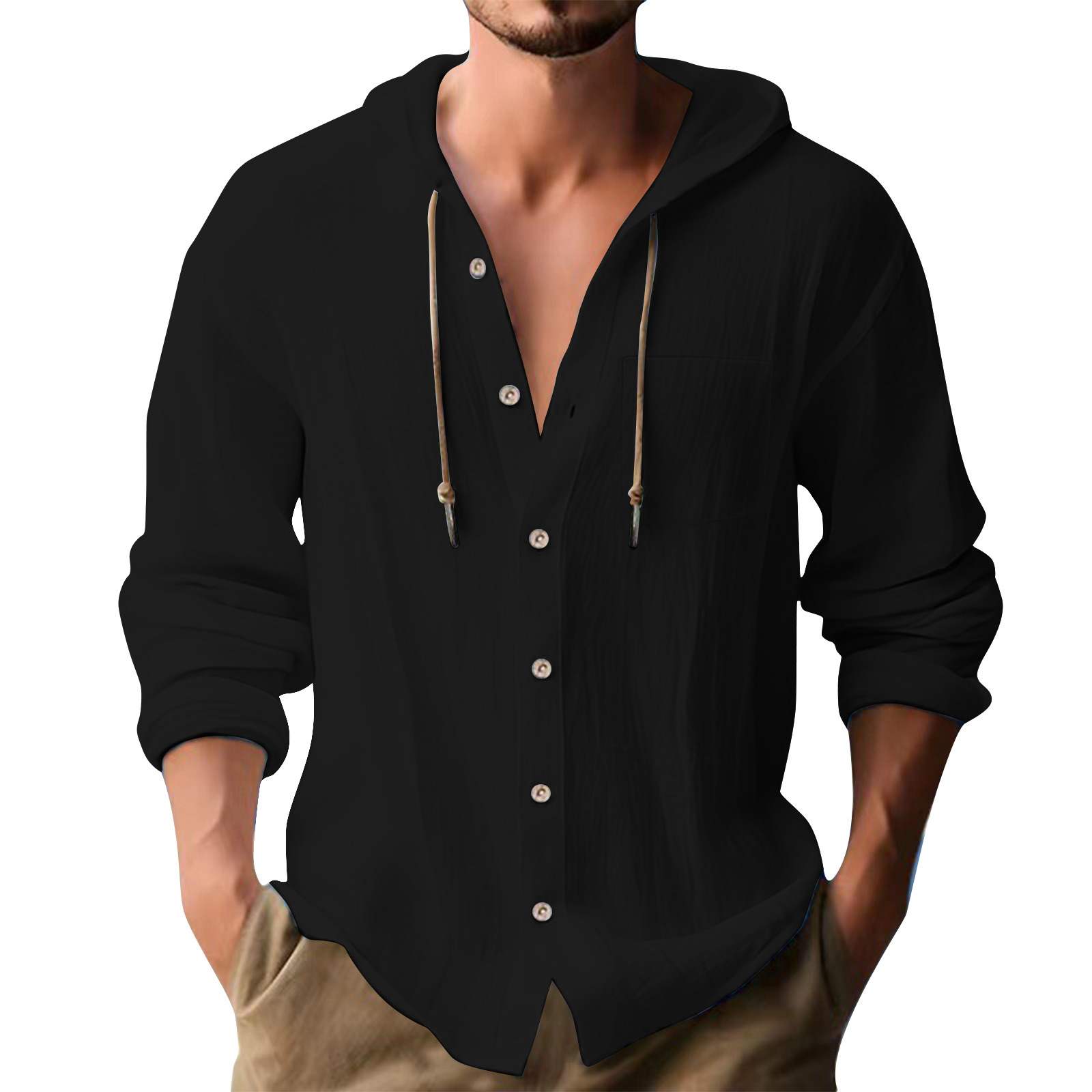 국경을 넘는 유럽과 미국 2025 새로운 핫 스포츠 트렌디 후드 티셔츠 솔리드 컬러 코튼 및 리넨 캐주얼 긴 소매 남성용 셔츠스토어 가기