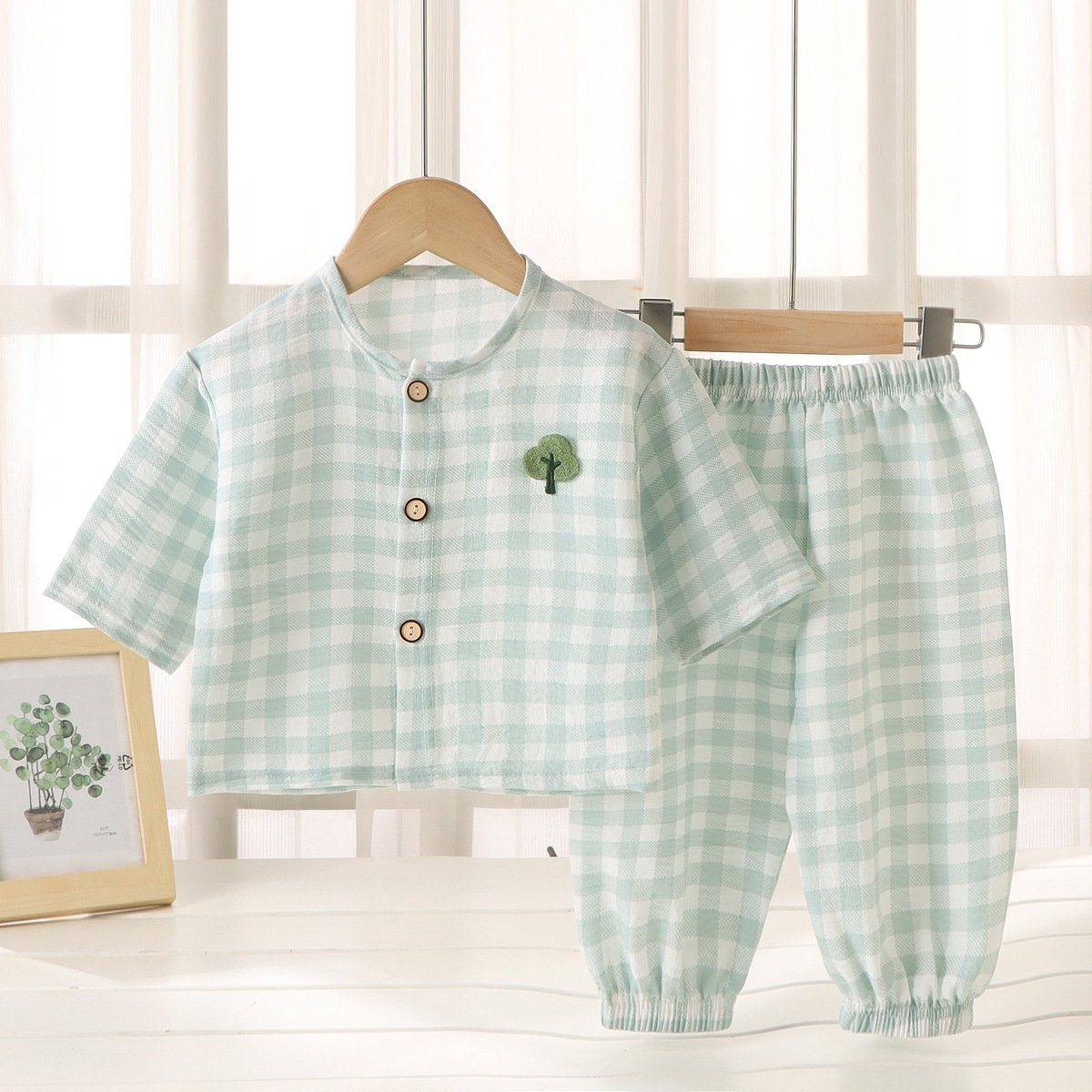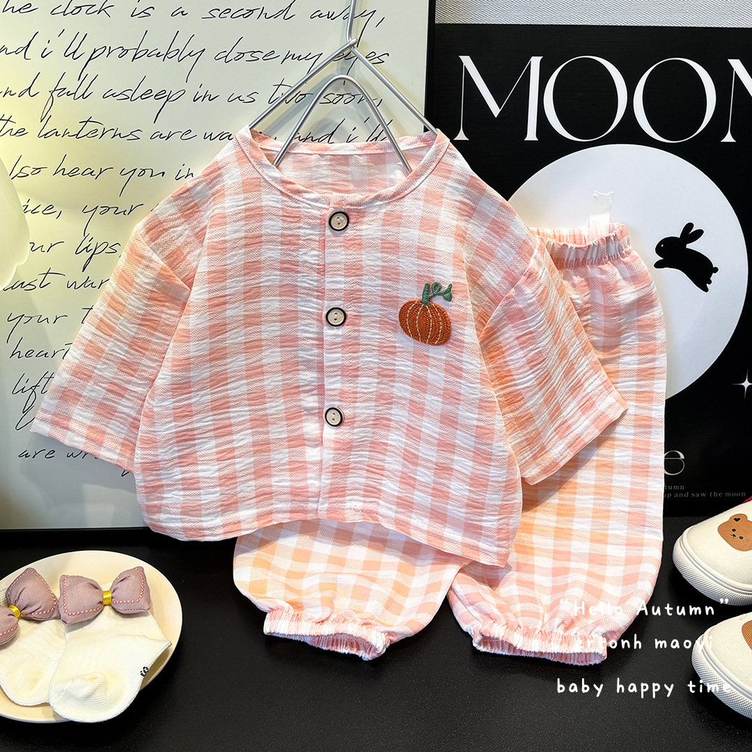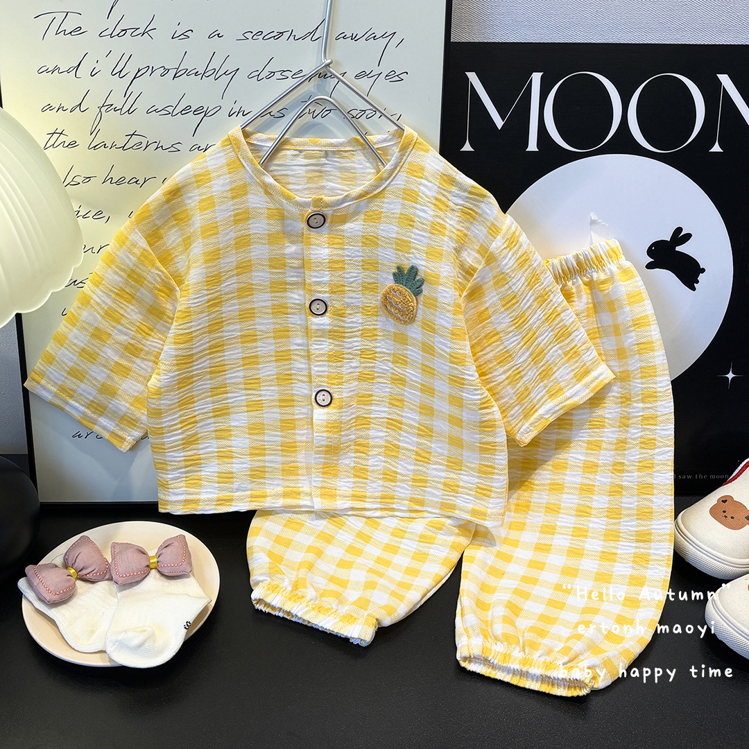 소년 소녀 구름 면화 홈 의류 세트 여름 카디건 만화 어린이 잠옷 탑 바지 봄과 가을 투피스 세트