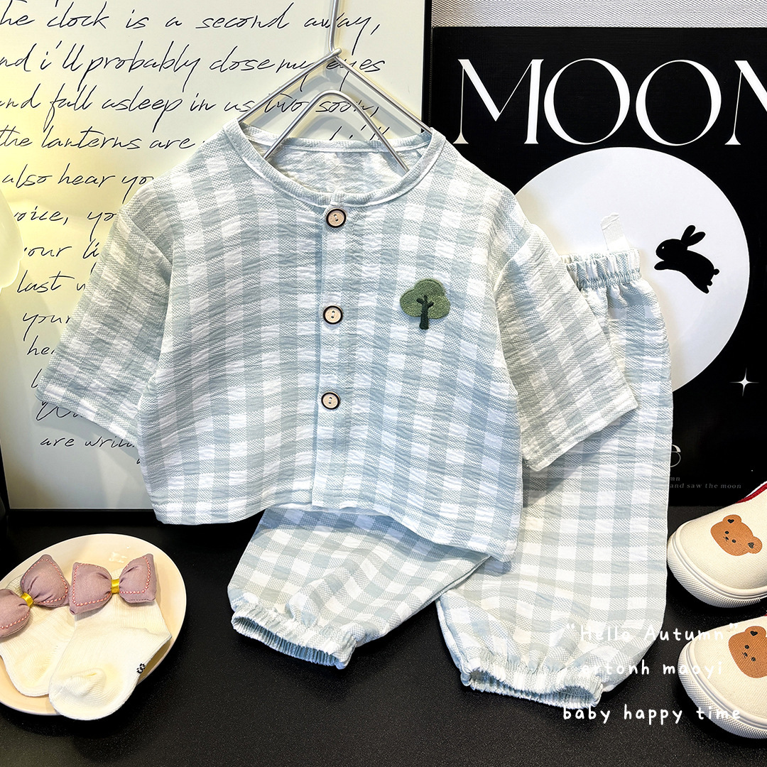 소년 소녀 구름 면화 홈 의류 세트 여름 카디건 만화 어린이 잠옷 탑 바지 봄과 가을 투피스 세트스토어 가기