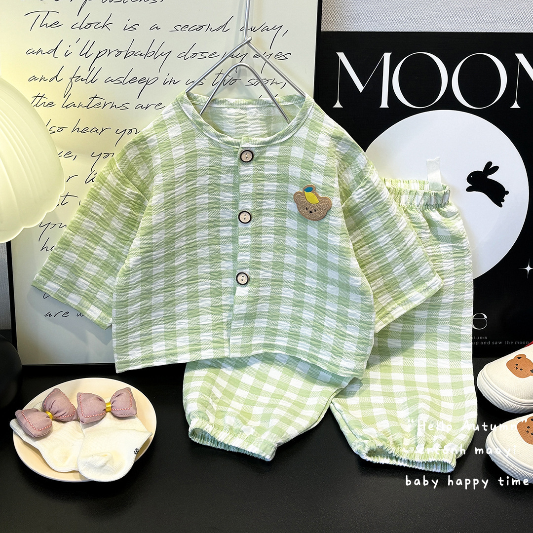• 폴리오 체크무늬 슈트-그린 체크무늬 곰