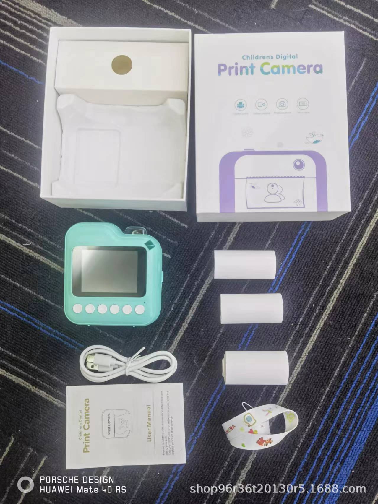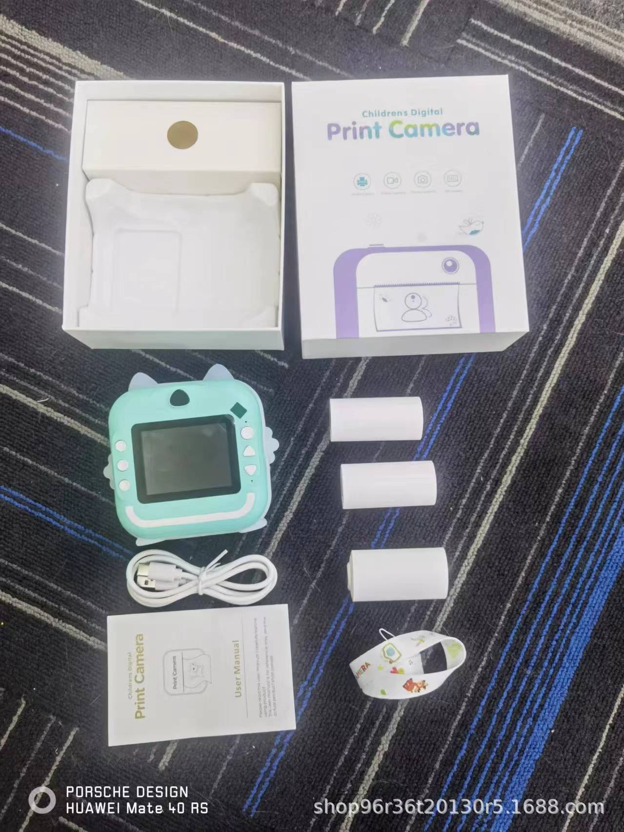 • Q5 파란색 카메라 + 인쇄 용지 3롤 + 끈