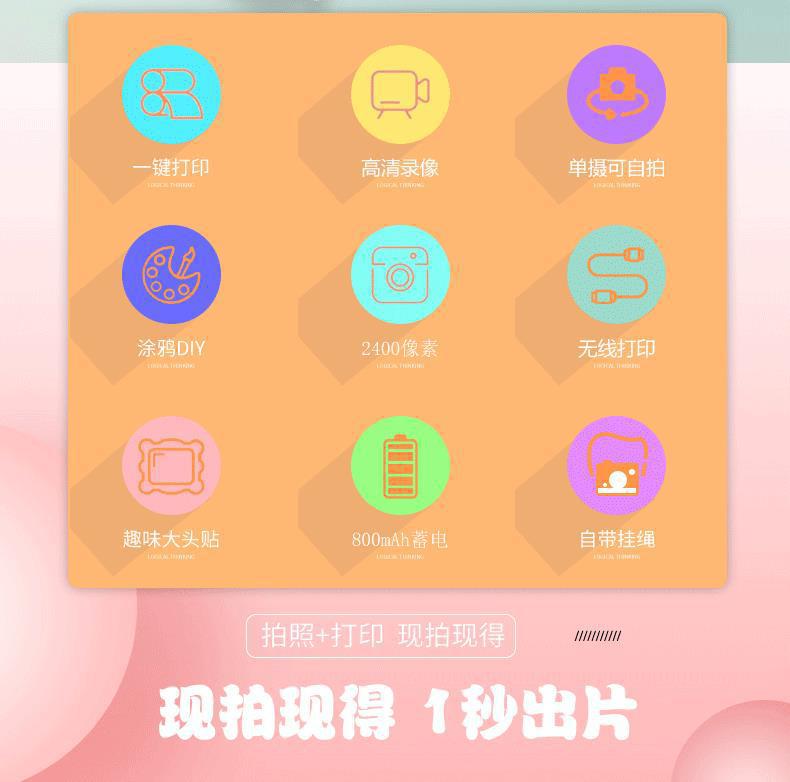 • Q6 핑크 카메라 + 인쇄용지 3롤 + 끈