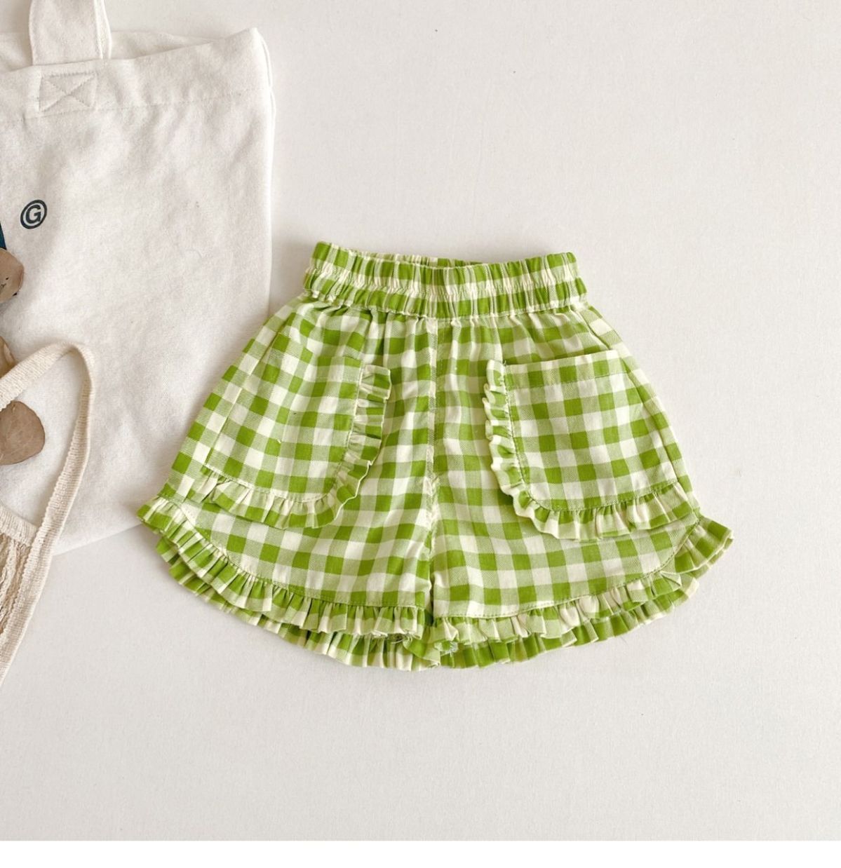 • 녹색과 흰색 체크 무늬 레이스 반바지