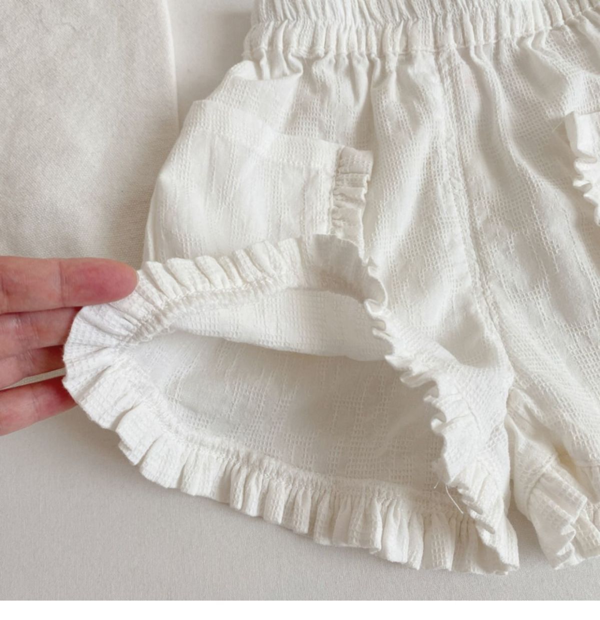 중소형 어린이 바지 여자 2025 여름 새 여성 아기 레이스 반바지 한국식 아동면 프렐리스 트렌디 바지