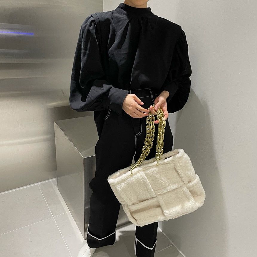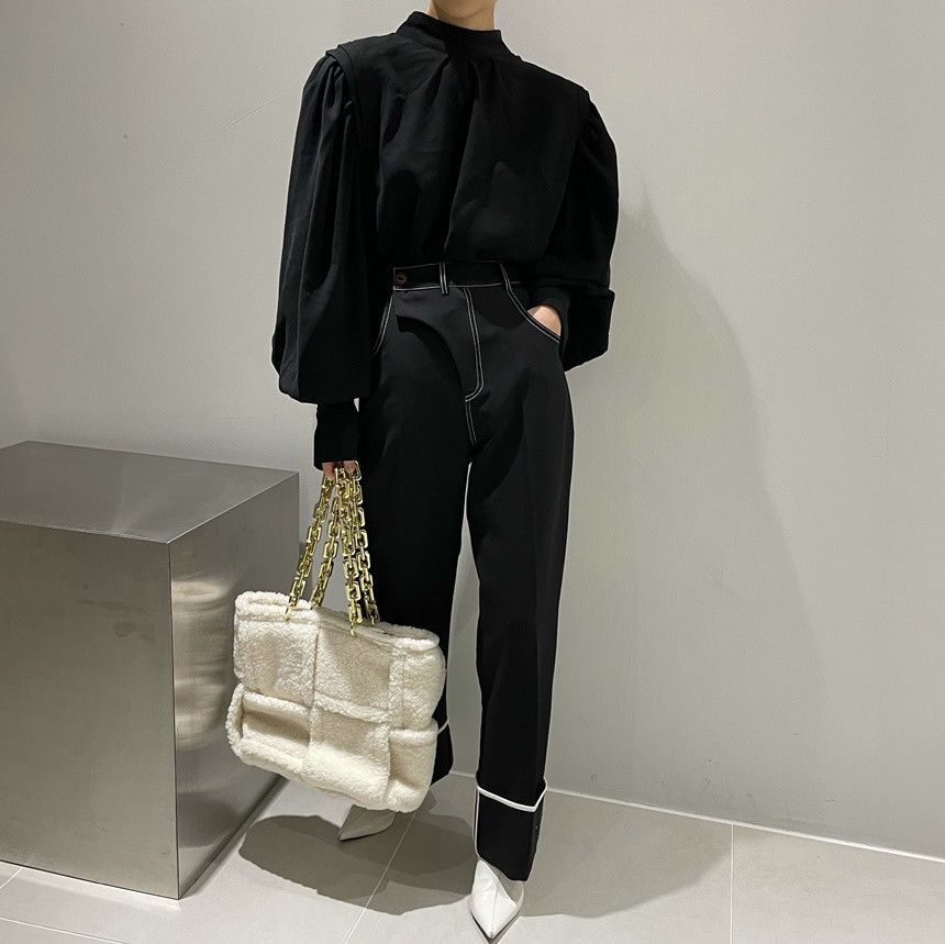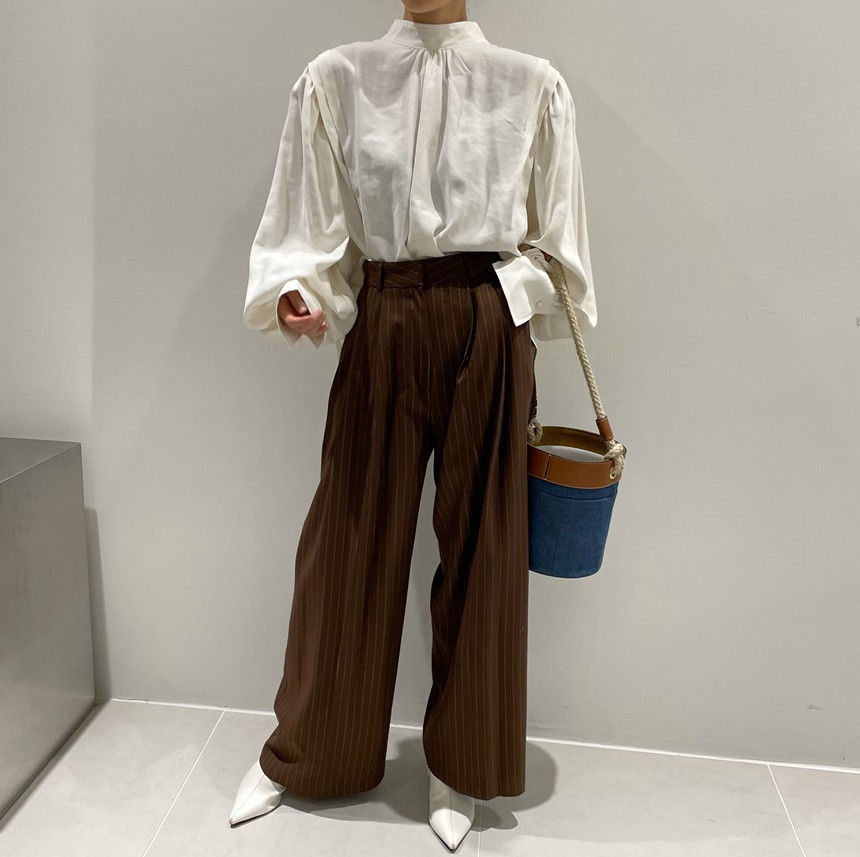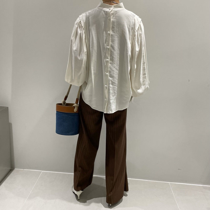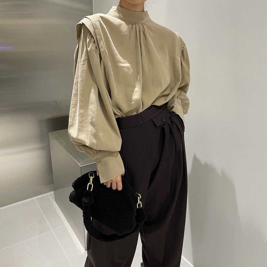 봄 한국 프렌치 하프 하이 칼라 백 버튼 디자인 틈새 패션 랜턴 슬리브 셔츠 최고 여성스토어 가기