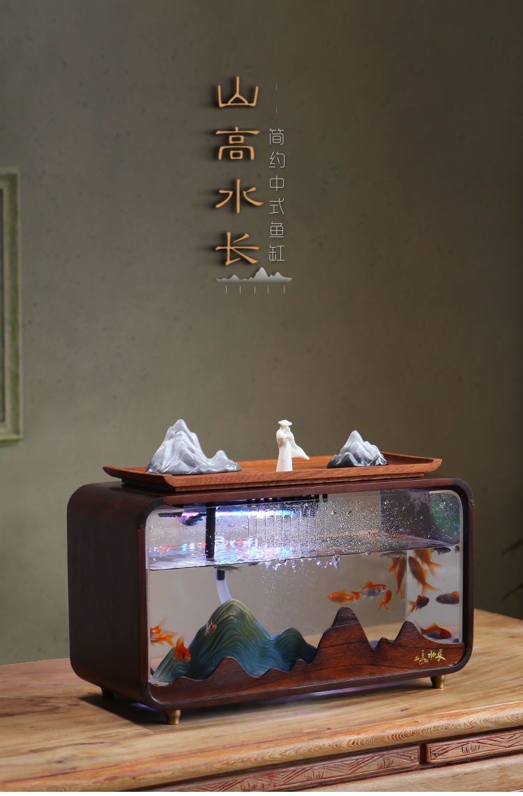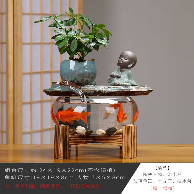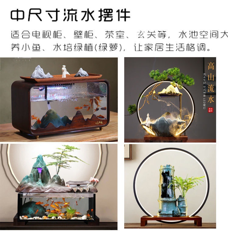 창조적 인 거실 데스크탑 물고기 탱크 실행 물 장식품 현대 순환 물고기 연못 커피 테이블 사무실 바위 오프닝 선물