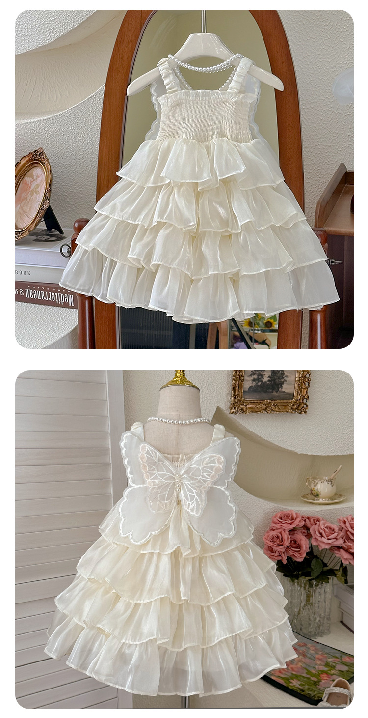 【즉시 배송】여아 드레스 2025 여름 신상 스타일리시한 소녀 나비 날개 슈퍼 요정 케이크 드레스스토어 가기
