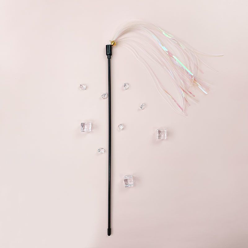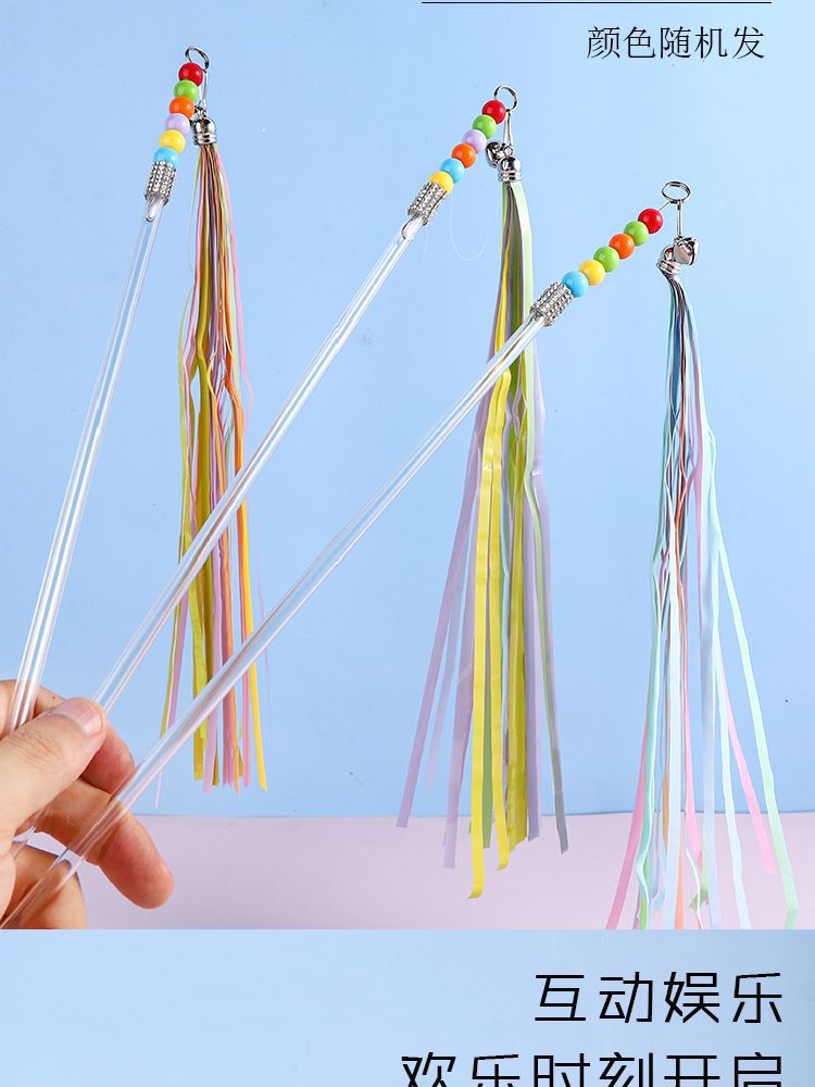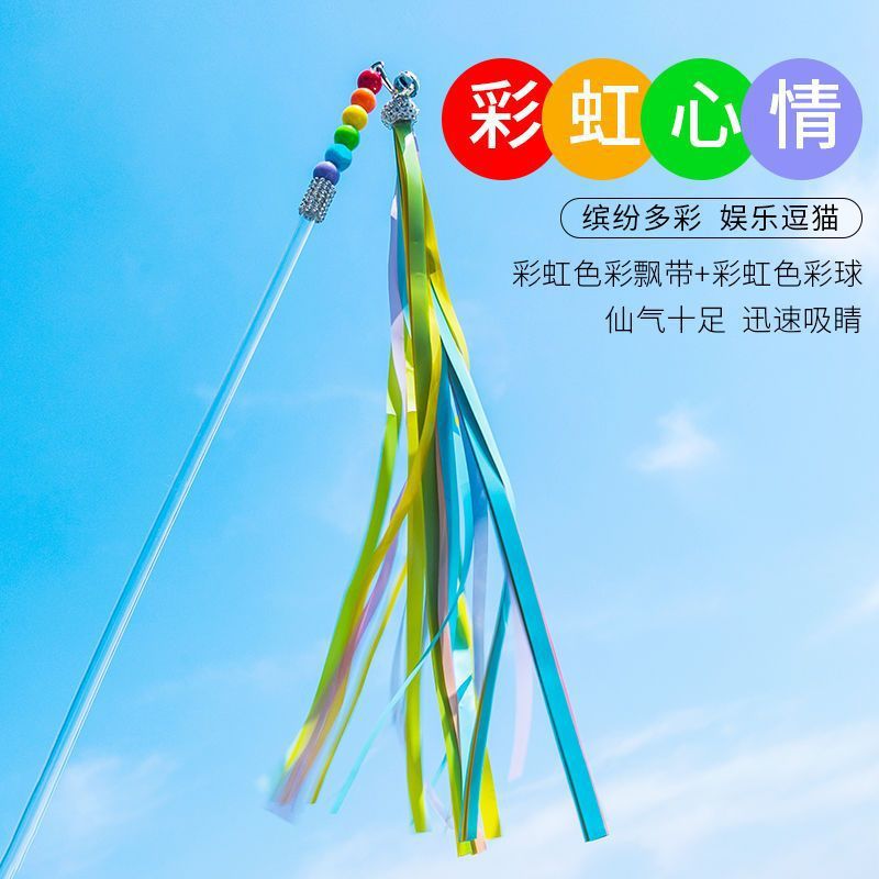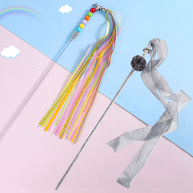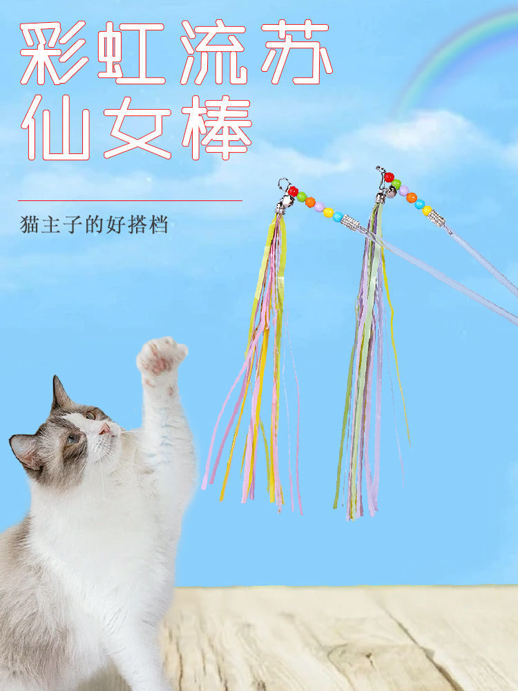 • 요정 무지개 술 고양이 놀리는 막대기 + 라피아 이가 나는 막대기