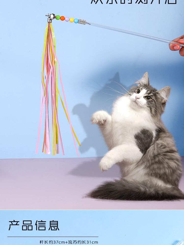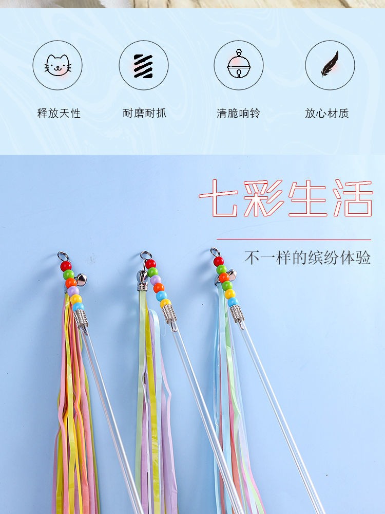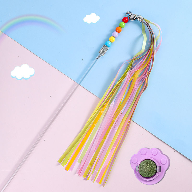 국경 도매 무지개 술 고양이 티저는 벨 고양이 장난감으로 요정 긴 막대 물린 저항에서 머리를 대체 할 수 있습니다스토어 가기