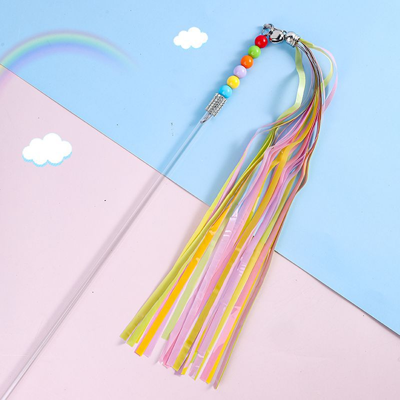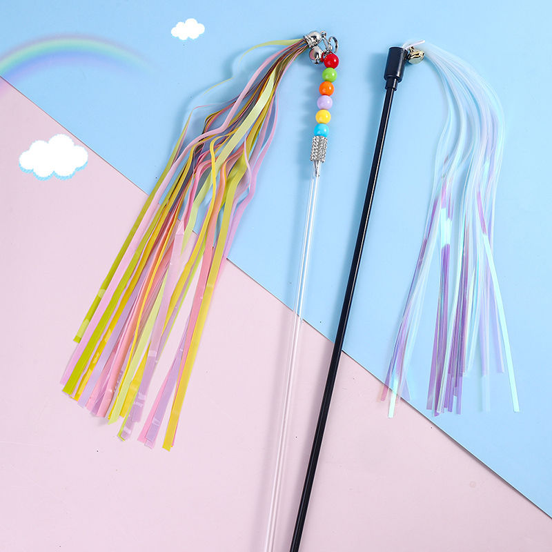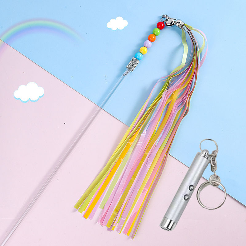 • 요정 무지개 술 고양이 놀리는 막대기 + 딸랑이 종이