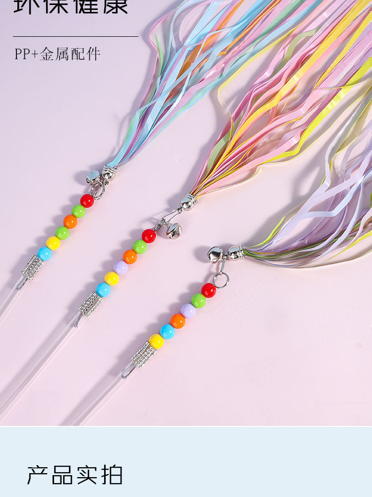 국경 도매 무지개 술 고양이 티저는 벨 고양이 장난감으로 요정 긴 막대 물린 저항에서 머리를 대체 할 수 있습니다