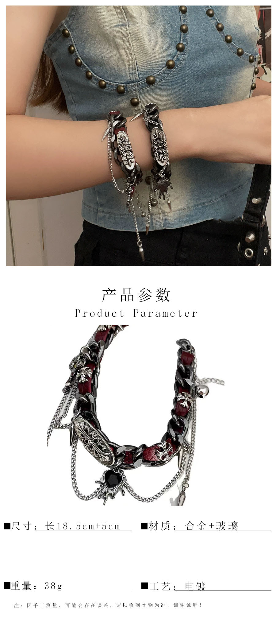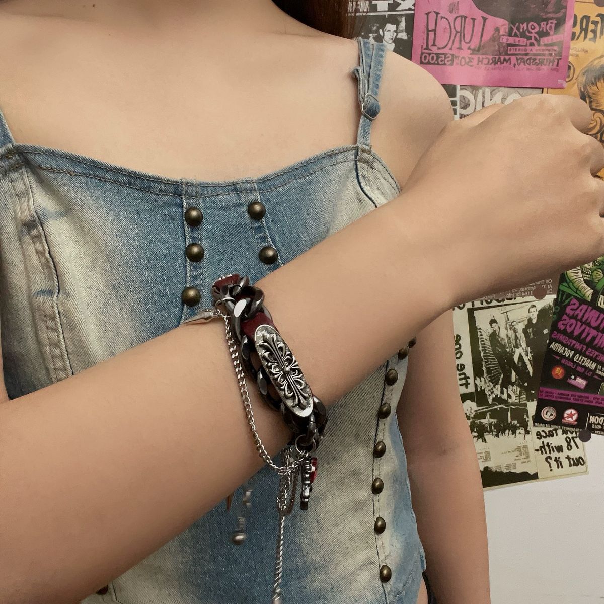 미국 스타일 중공업 양각 가죽 팔찌 하위 문화 스파이스 걸스 달콤한 쿨 틈새 고딕 펑크 스타일 다크 핸드 액세서리