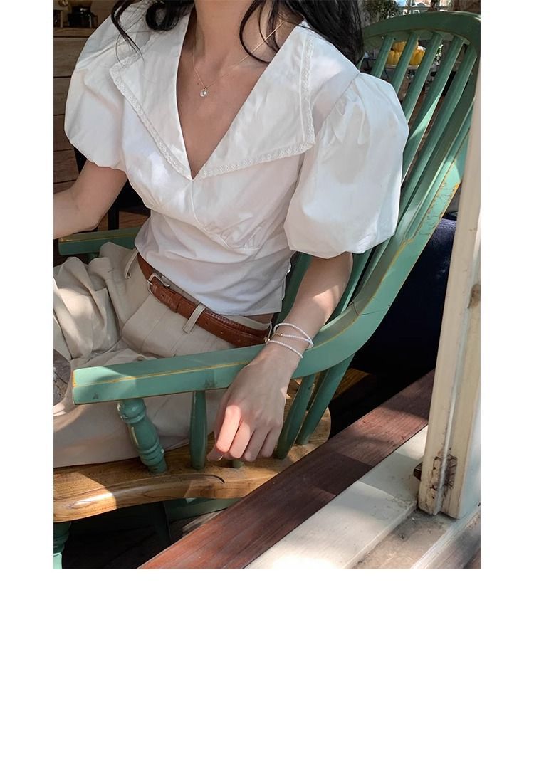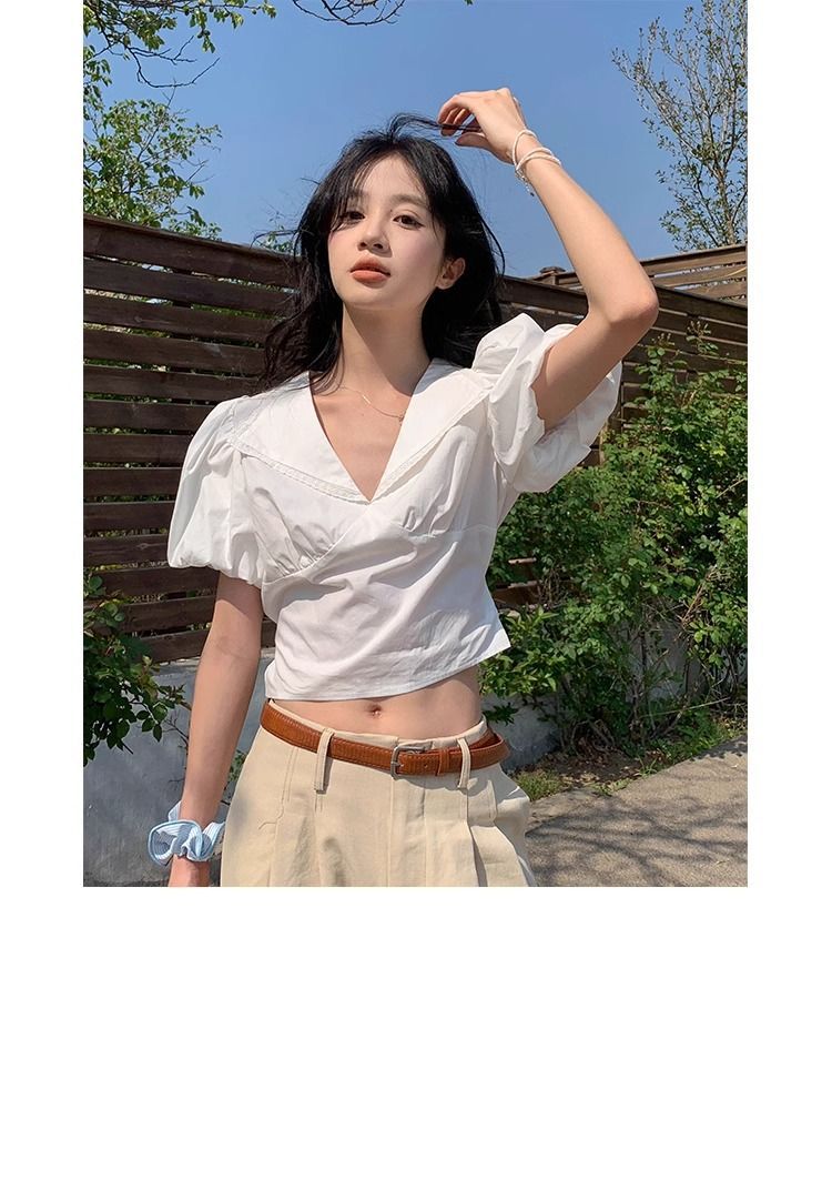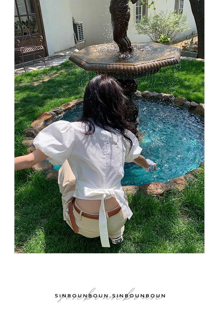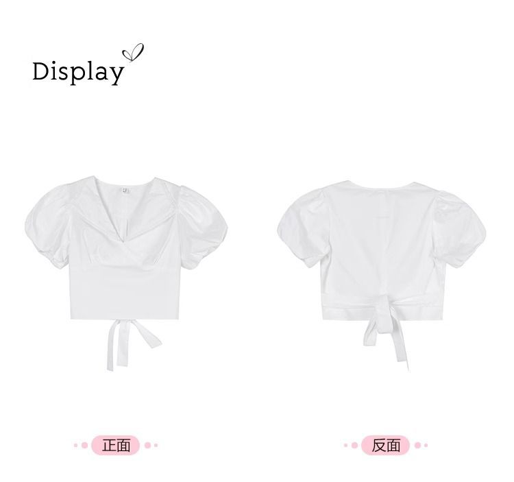홈 메이드 프렌치 브넥 퍼프 슬리브 탑 쇼트 웨이스트 셔츠 여성용 백 스트랩 보우 셔츠스토어 가기