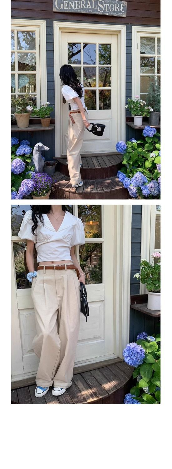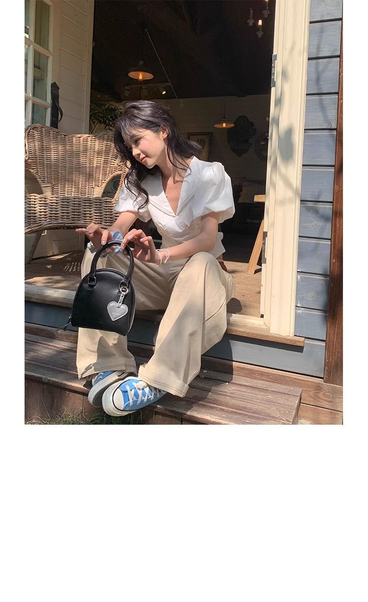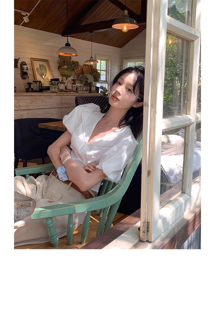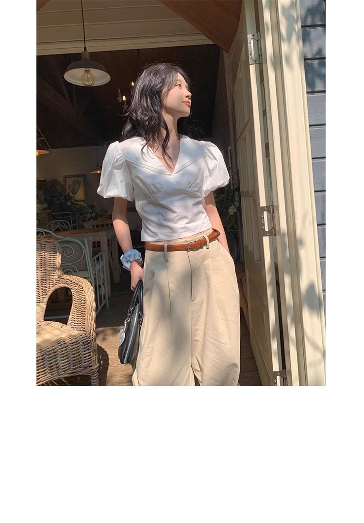 홈 메이드 프렌치 브넥 퍼프 슬리브 탑 쇼트 웨이스트 셔츠 여성용 백 스트랩 보우 셔츠스토어 가기