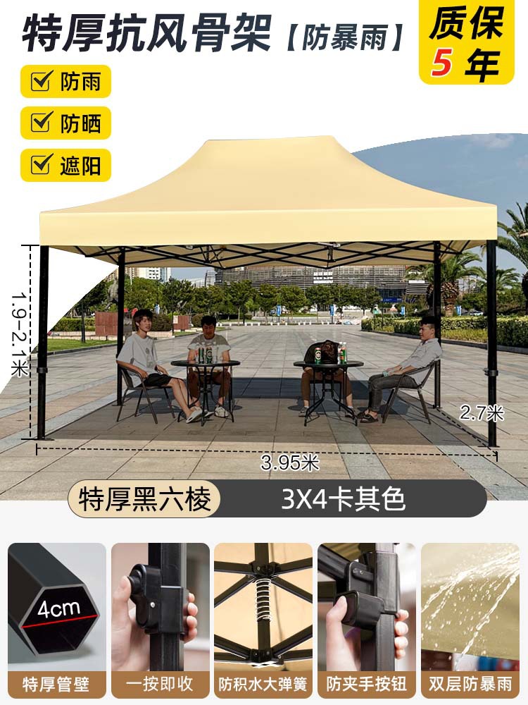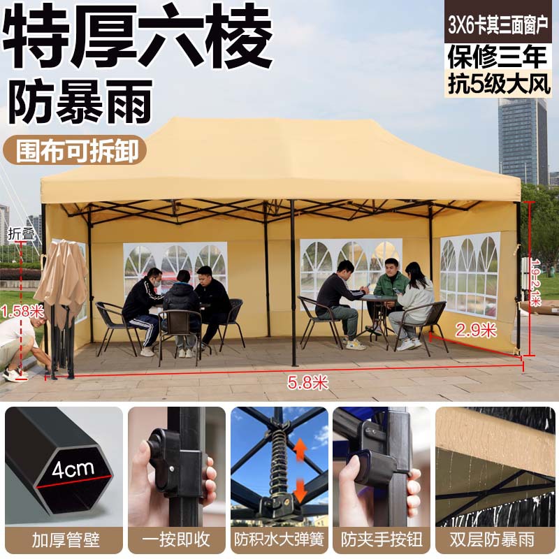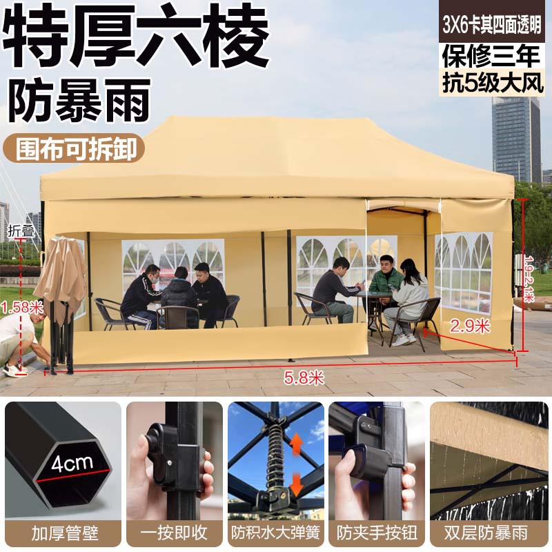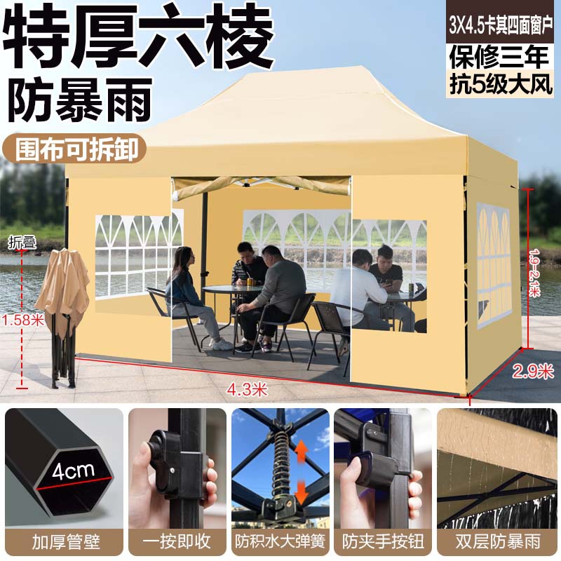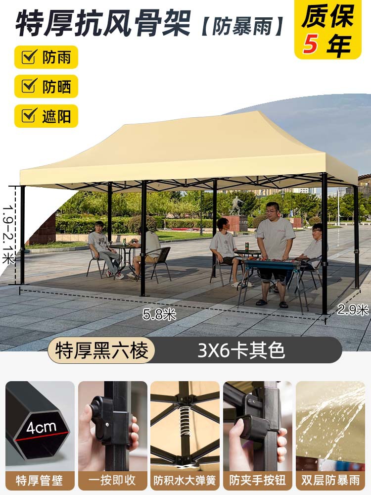 • 3X 4.5m 두꺼운 육각 프레임 카키 [주로 추천 무거운 28kg 5년 보증]